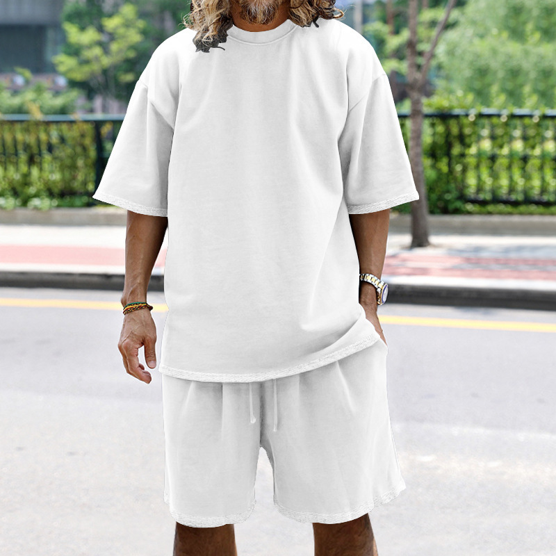 아마존 핫 세일 남성용 스포츠 남성용 세트 느슨한 여름 반팔 남성용 트렌디 한 유럽과 미국 캐주얼 남성복