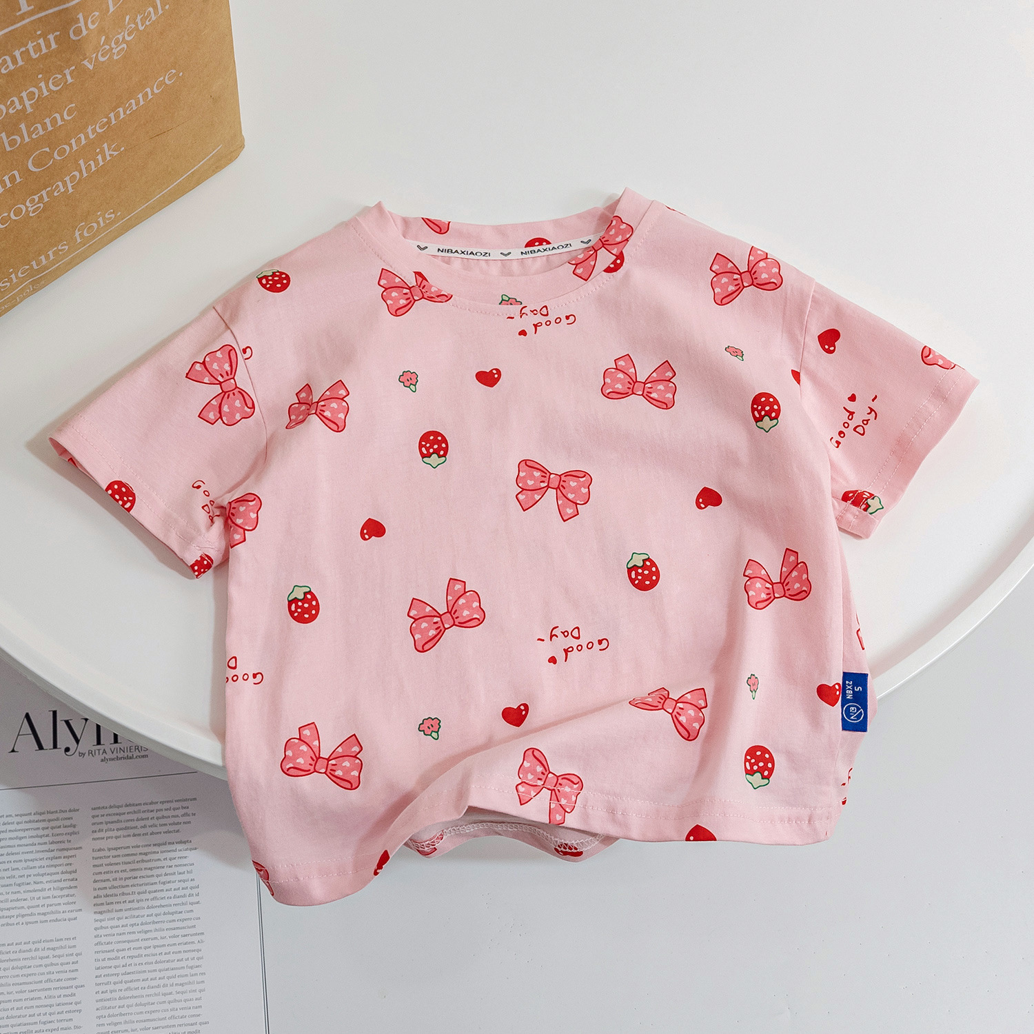 여자 면화 티셔츠 여름 새로운 한국 스타일 패션 인터넷 연예인 서양식 아기 소녀 인쇄 반팔 옷상의