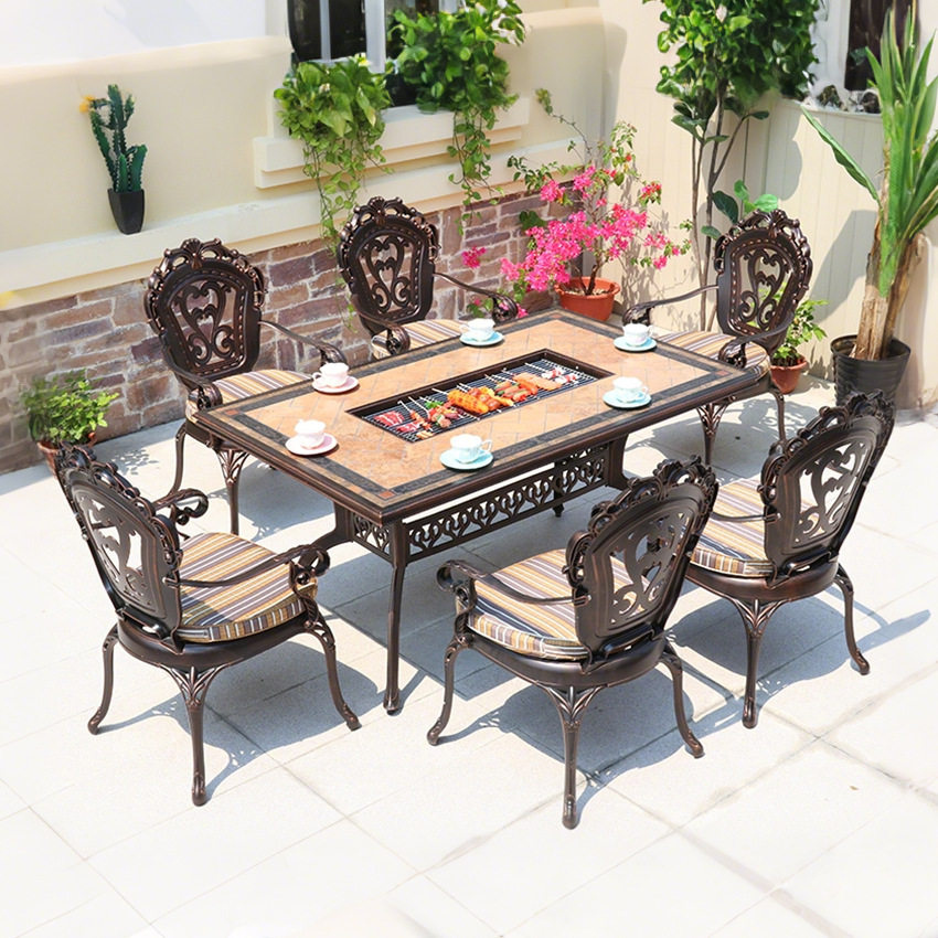 야외 식탁 바베큐 테이블 탄소 그릴 전기 그릴 이중 사용 안뜰 정원 빌라 테라스 바베큐 타일 긴 테이블 대형 테이블