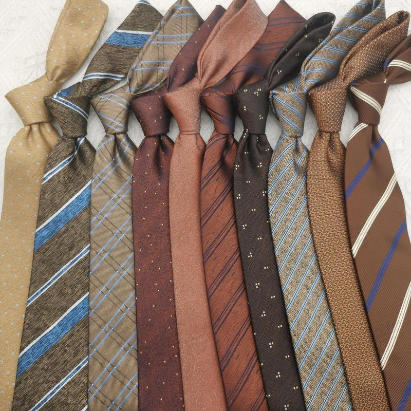 8cm 스트라이프 샴페인 다크 브라운 오렌지 자카드 빈티지 레저 작업 웨딩 넥타이 3 피스 나비 넥타이 스퀘어스토어 가기