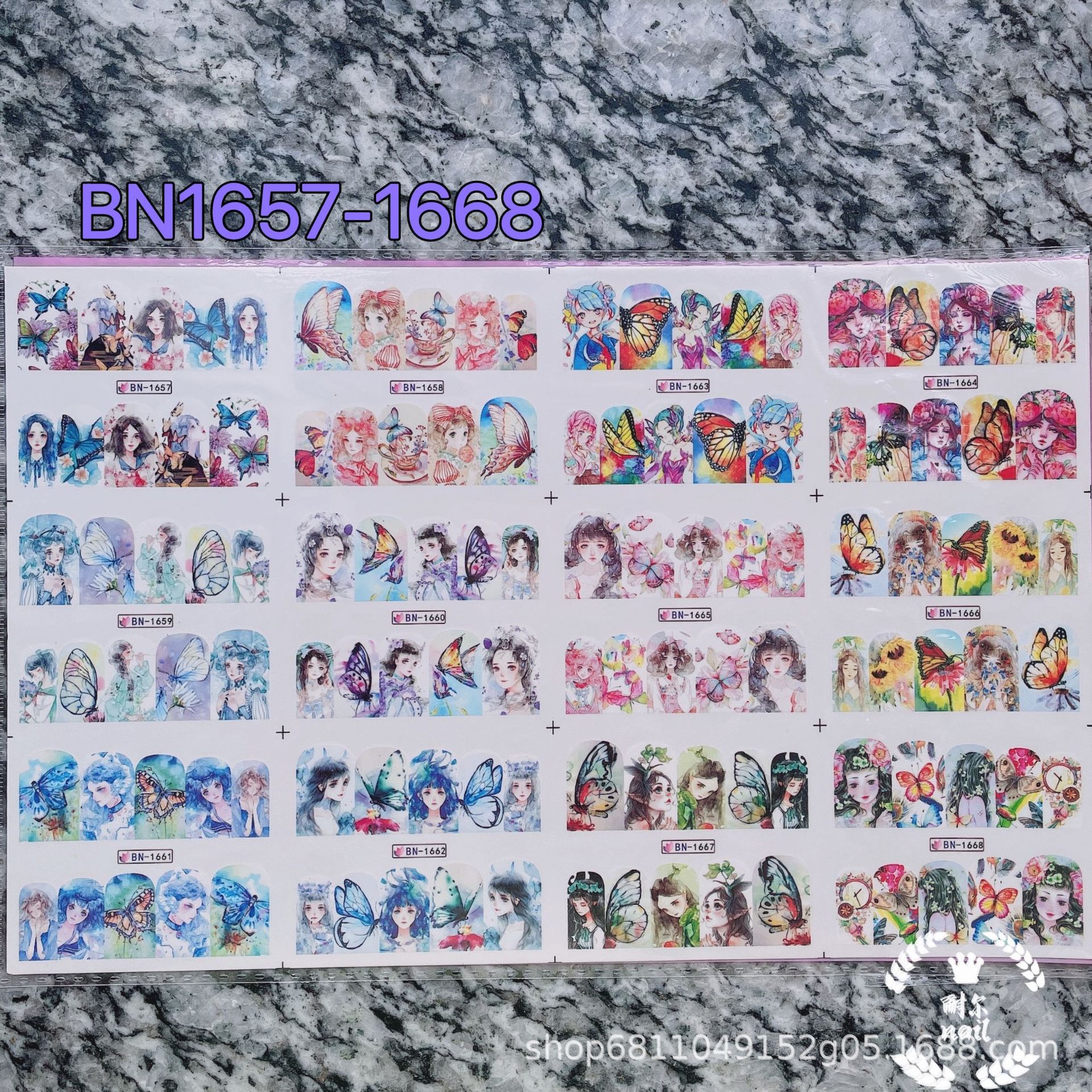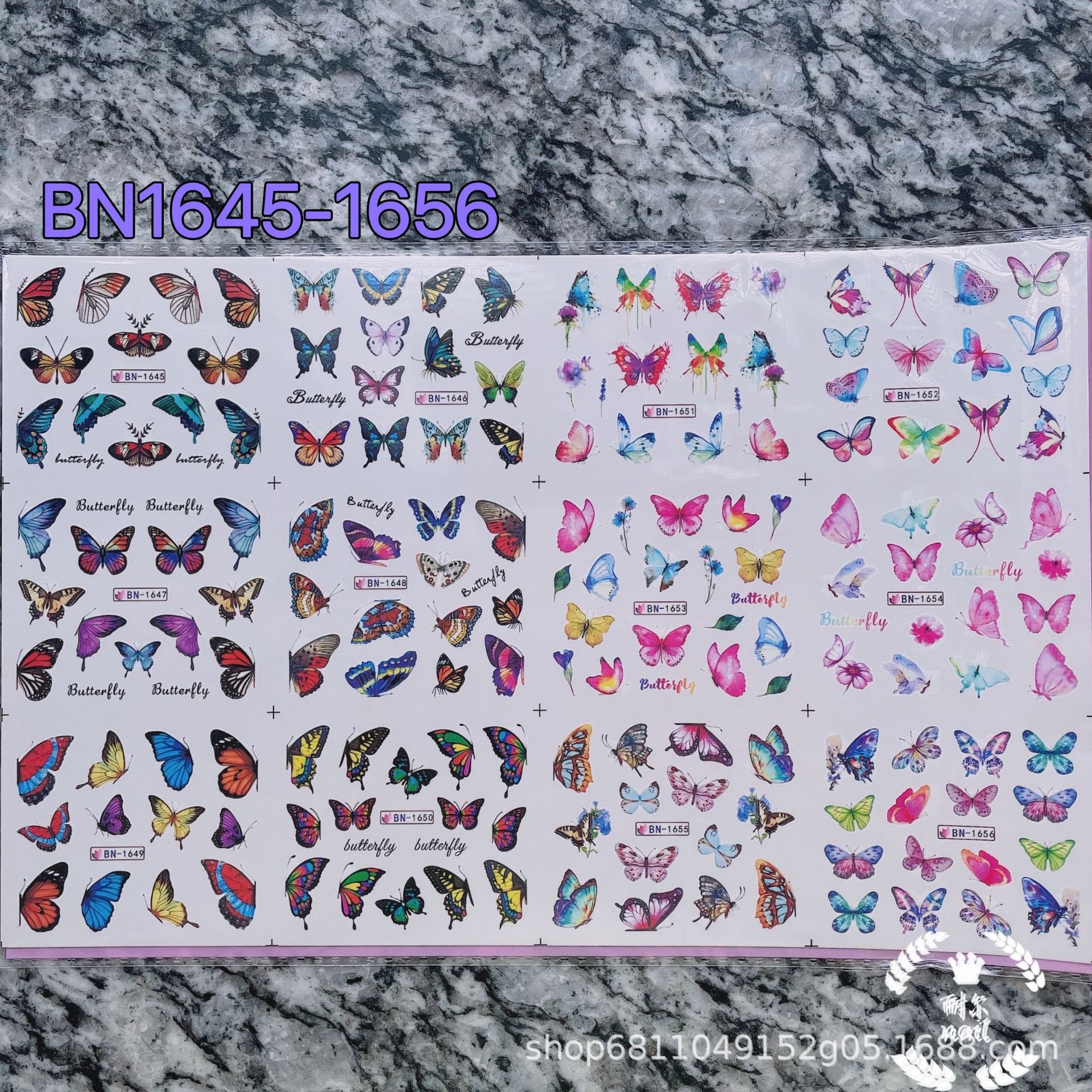 BN 크로스 보더 컬러 나비 전체 갑옷 꽃 요정 물 색깔 나비 네일 아트 버블 물 전송 데칼 조작하기 쉬운스토어 가기