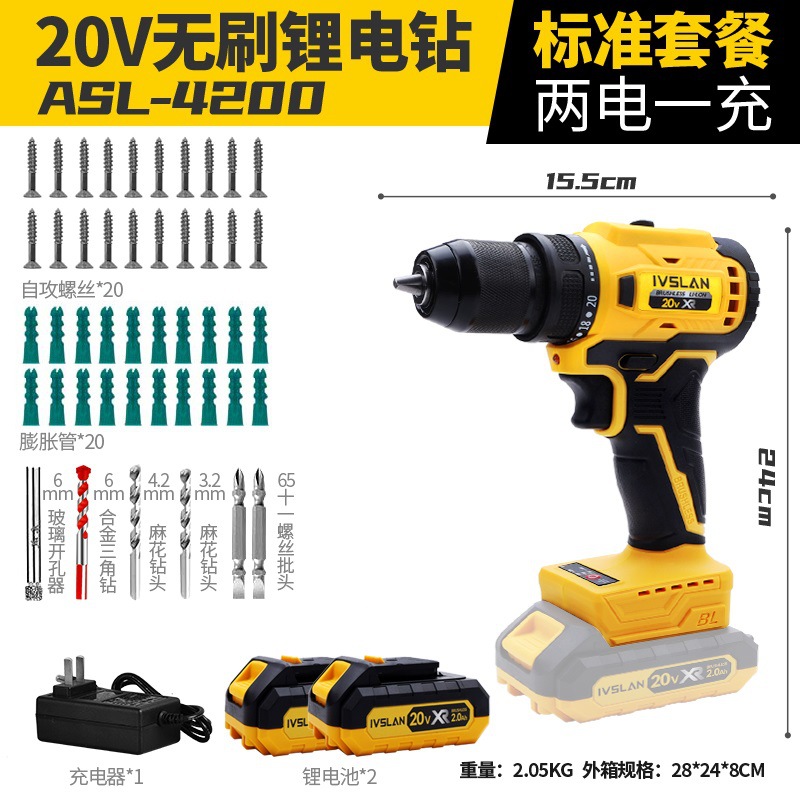 • 20V 리튬 전기 드릴 ASL-4200 [배터리 2개 및 충전기 1개] 표준 구성