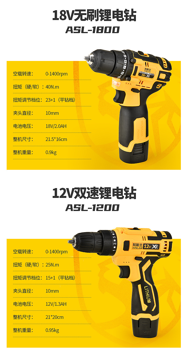 • 18V 리튬 전기 드릴 ASL-1800 [전기 1 대 및 충전 1 대] 규격