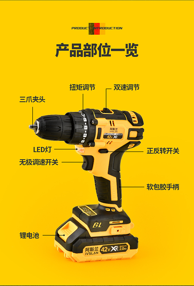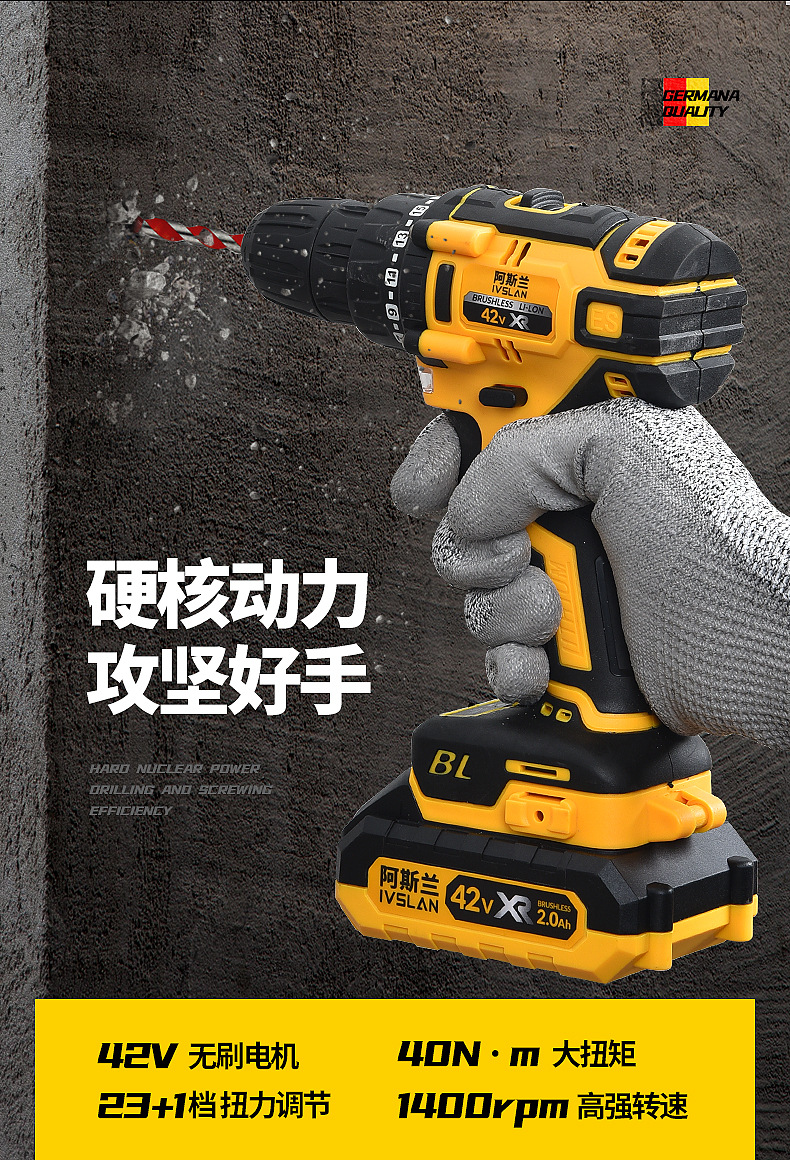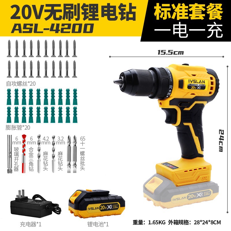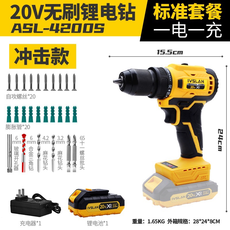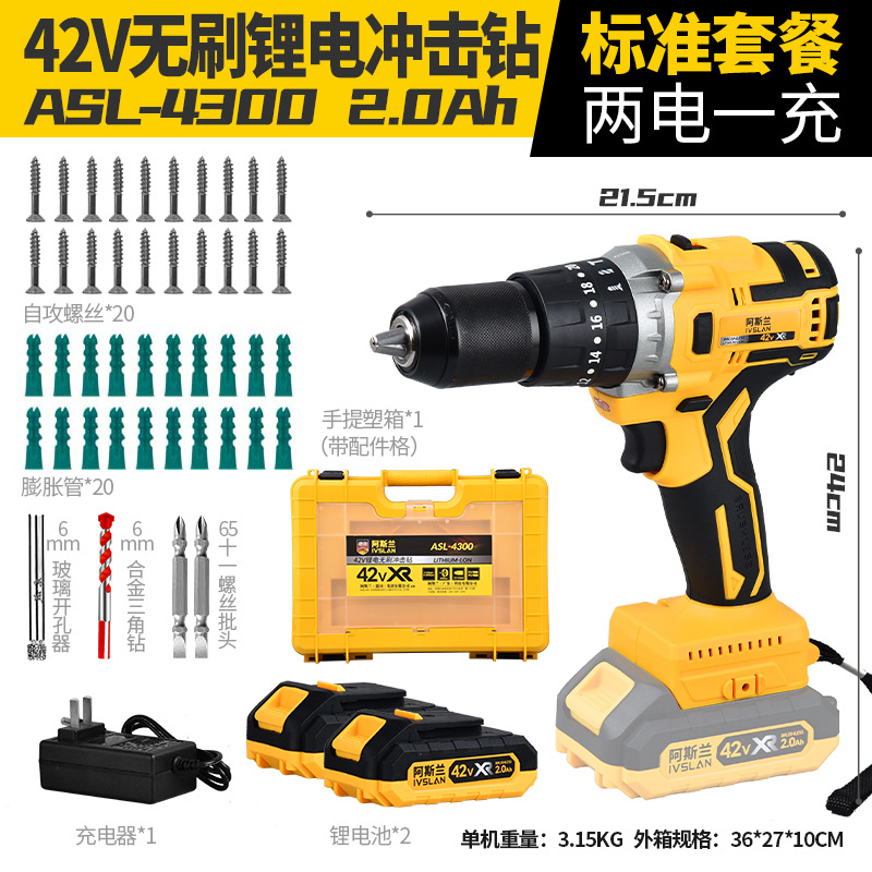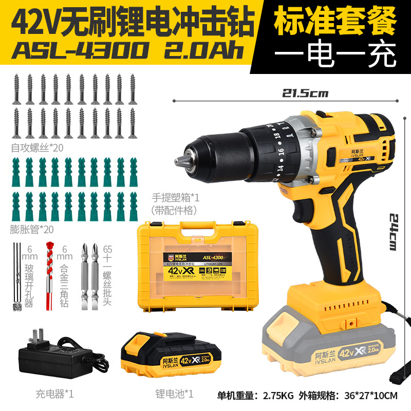 • 42V 고토크 리튬 배터리 임팩트 드릴 ASL-4300 (전기 1 대, 충전 1 대) 2.0 표준 패키지