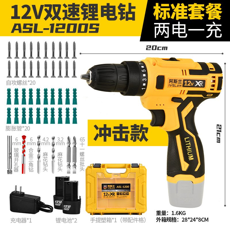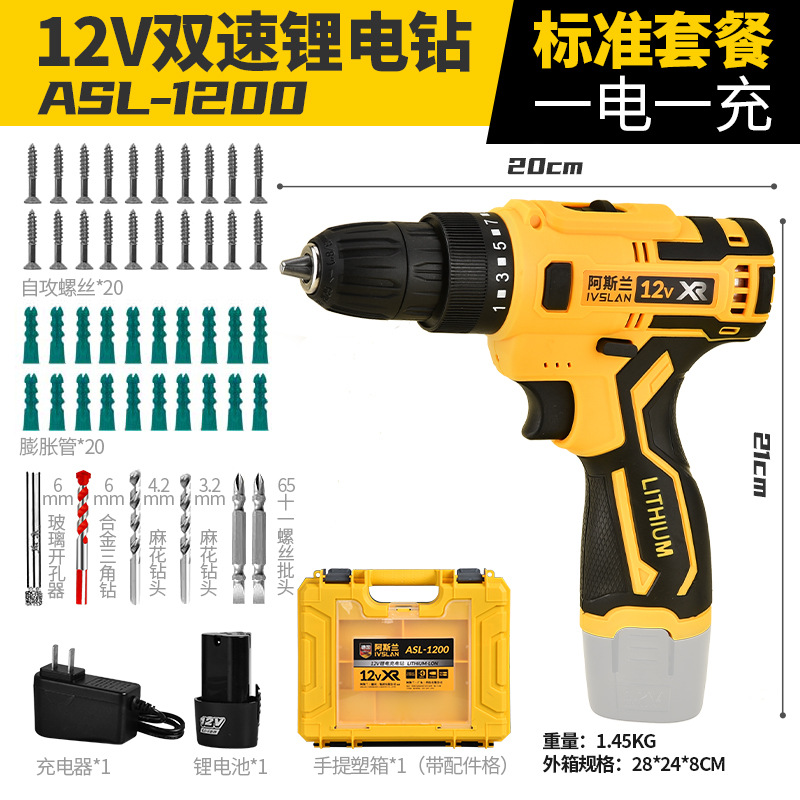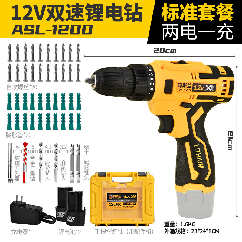 • 12v 더블 스피드 리튬 전기 드릴 ASL-1200 [전기 1 대 및 충전 1 대] 표준