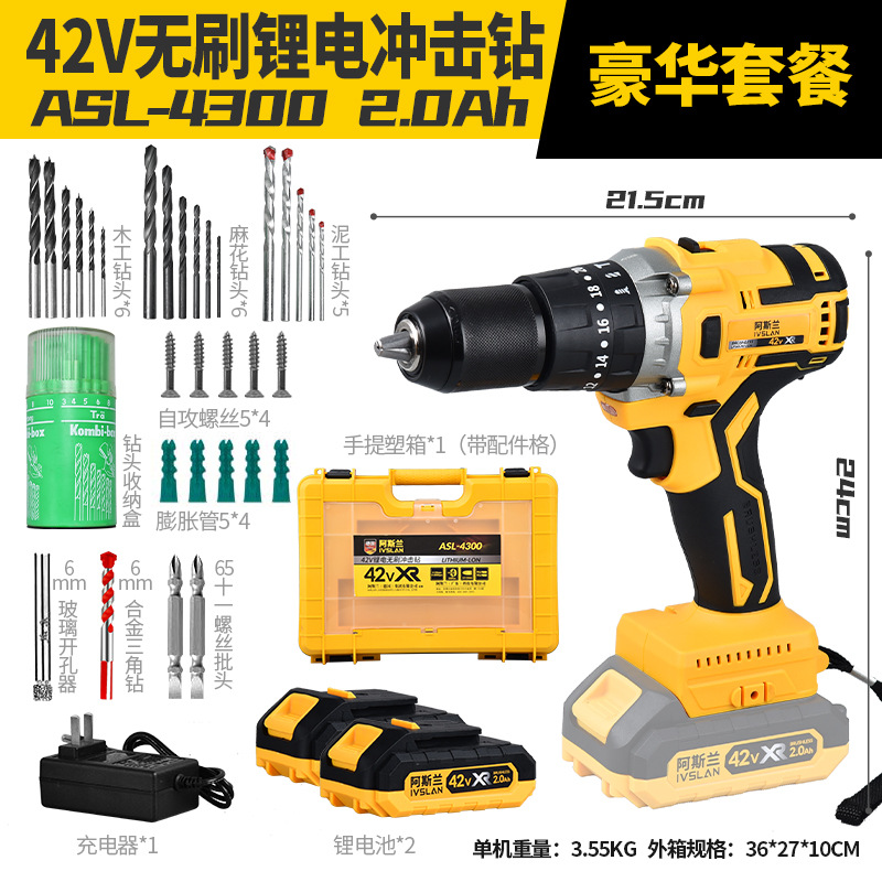 • 42V 고토크 리튬 배터리 임팩트 드릴 ASL-4300 (전기 2 대, 충전 1 대) 2.0 럭셔리 패키지
