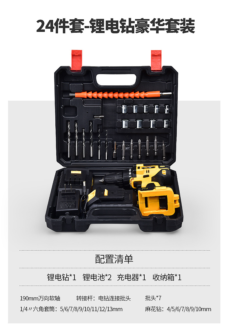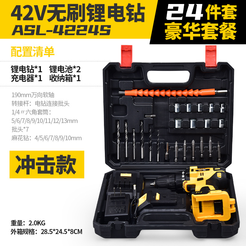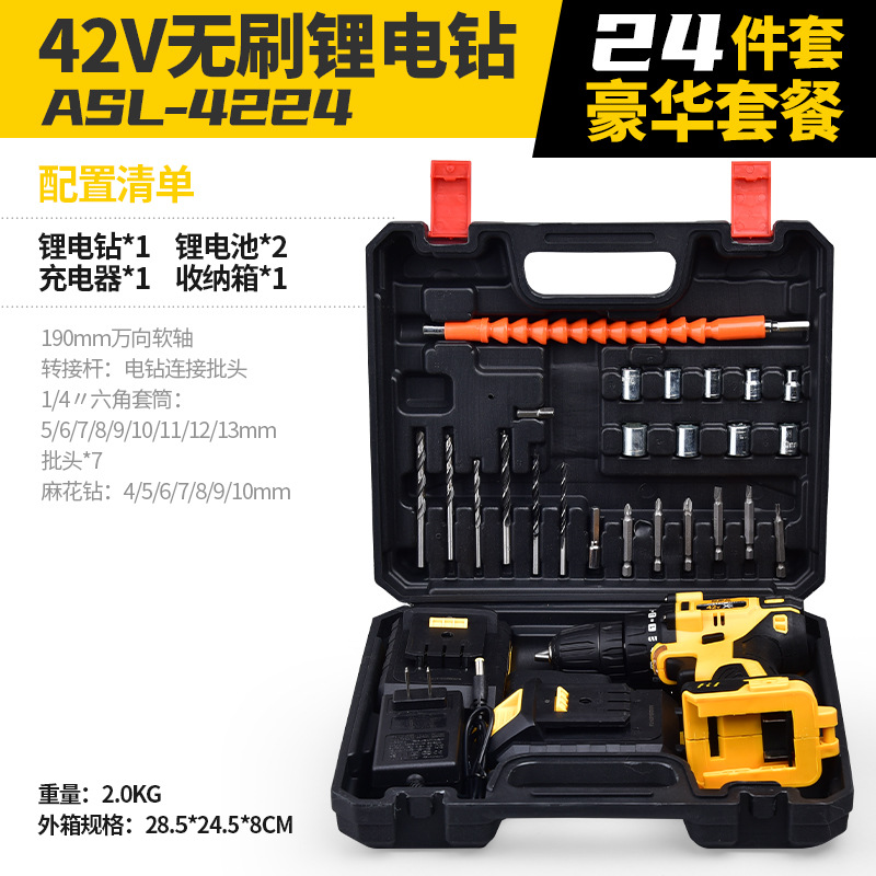 • 42V 리튬 전기 드릴 ASL-4200 [전기 2 대 및 충전 1 대] 24 피스 럭셔리 세트