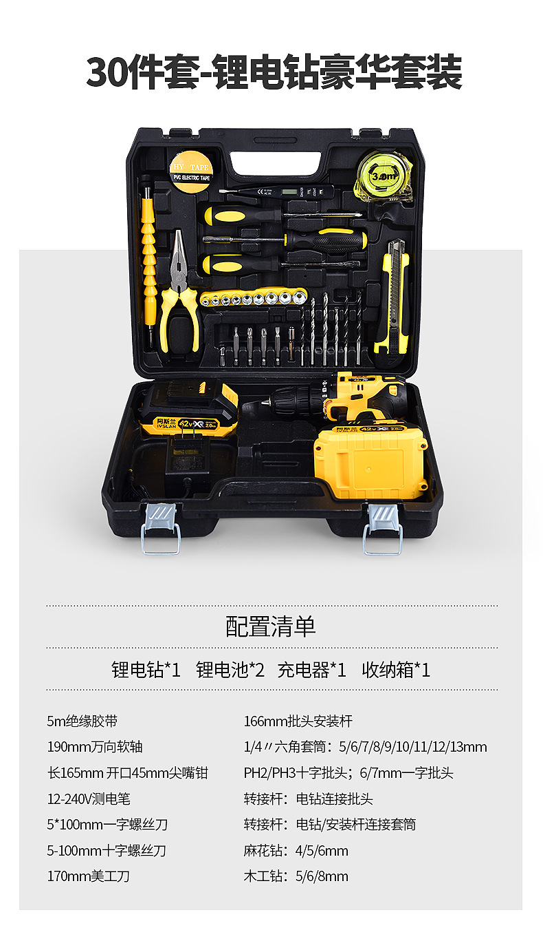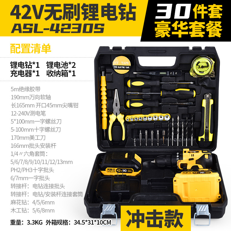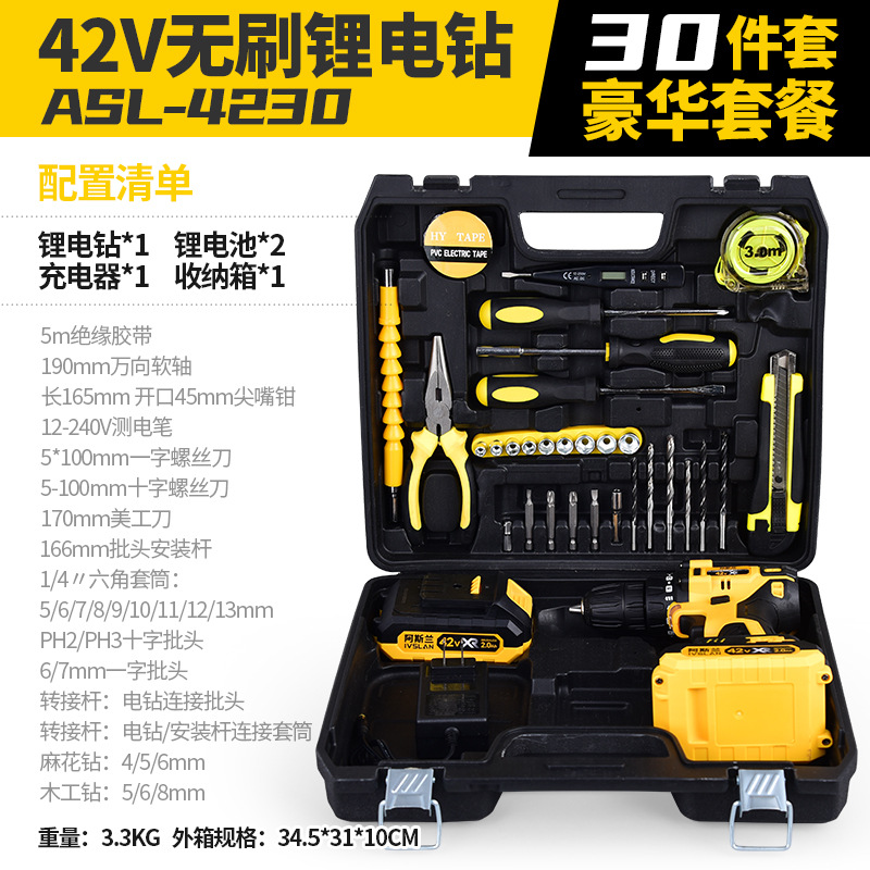 • 42V 리튬 전기 드릴 ASL-4200 [전기 2 대 및 충전 1 대] 30 피스 럭셔리 세트