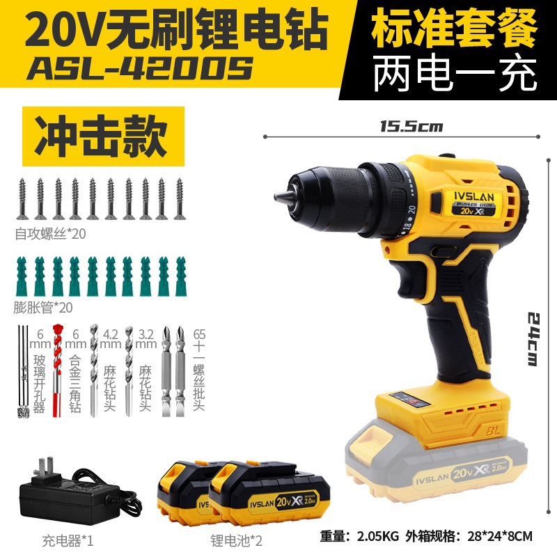 • 20V 리튬 배터리 임팩트 드릴 ASL-4200S [배터리 2개 및 충전기 1개] 표준 구성