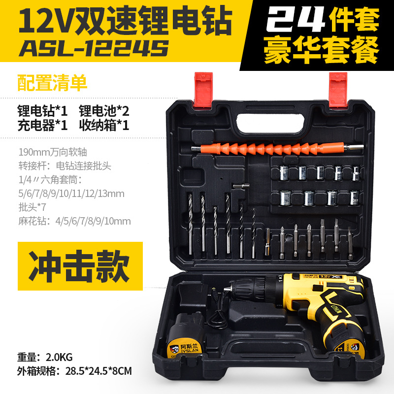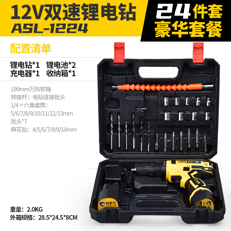 • 12v 2 단 리튬 전기 드릴 ASL-1200 [2 전기 및 1 충전] 24 피스 럭셔리 세트