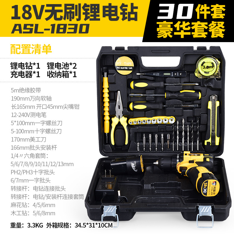 • 18V 리튬 전기 드릴 ASL-1800 [전기 2 대 및 충전 1 대] 30 피스 럭셔리 세트
