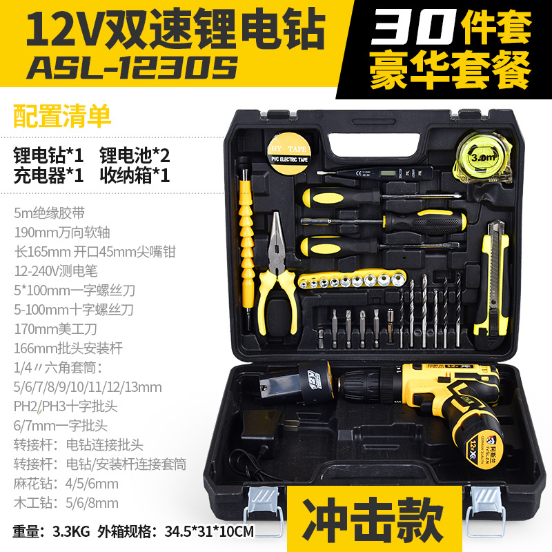 • 12v 2 단 리튬 전기 드릴 ASL-1200 [2 전기 및 1 충전] 30 피스 럭셔리 세트