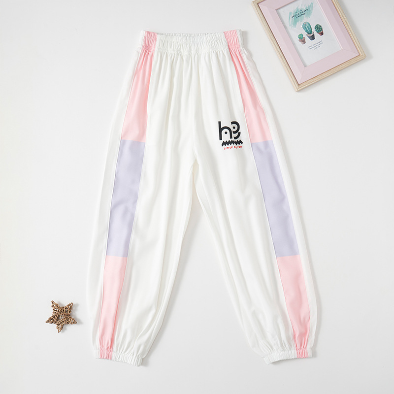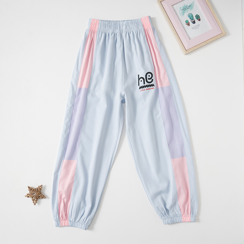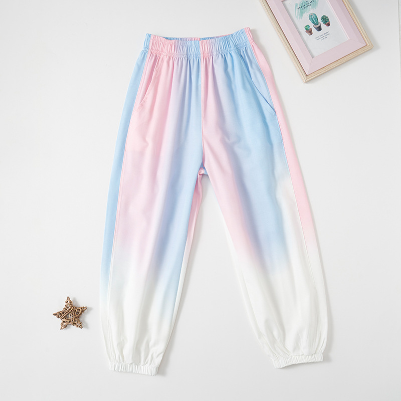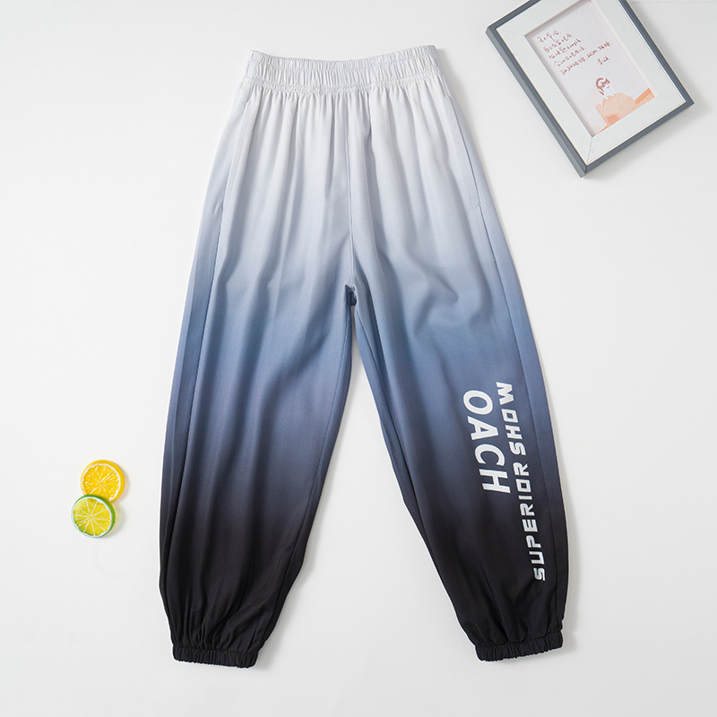 어린이용 속건성 바지 그라데이션 색상 여름 캐주얼 여아용 모기 방지 바지 중대형 어린이용 아이스 실크 자외선 차단 남아용 스포츠 바지 트렌디