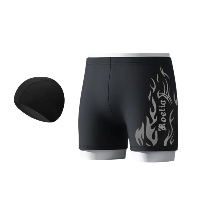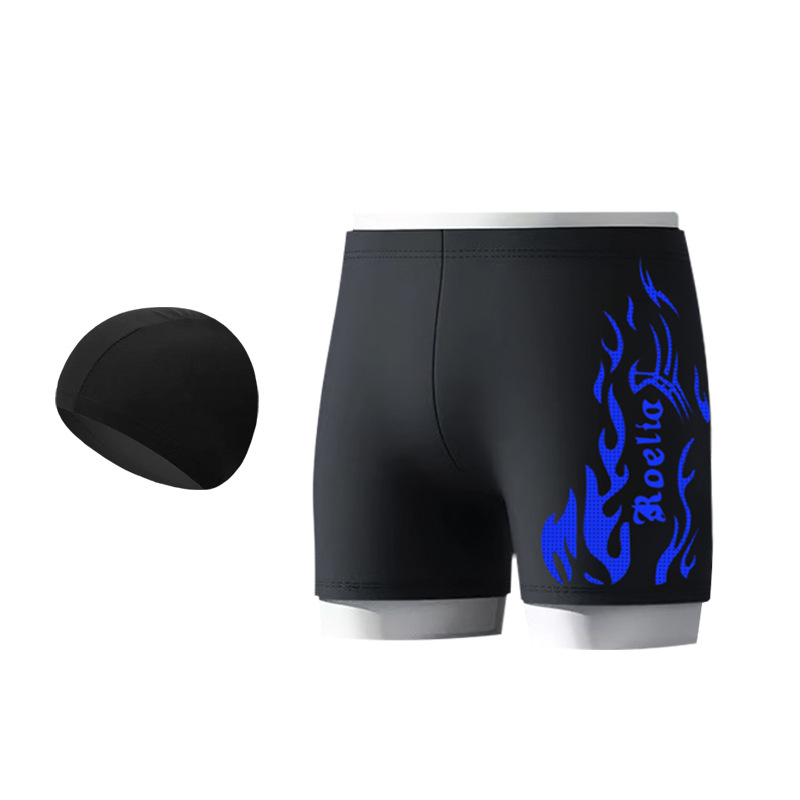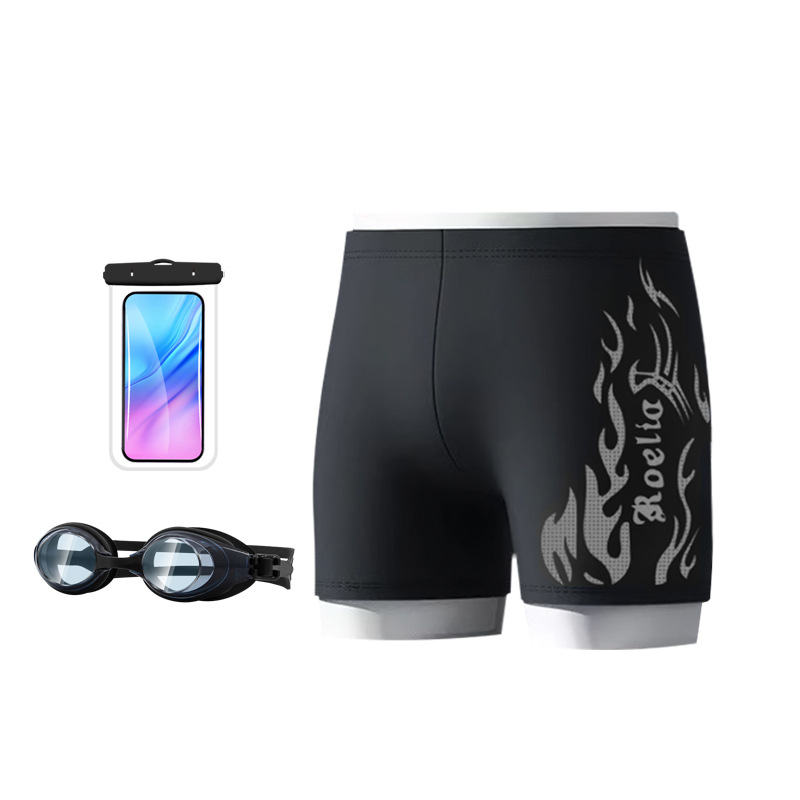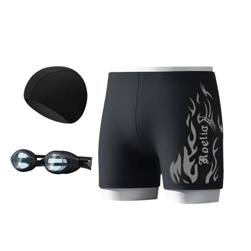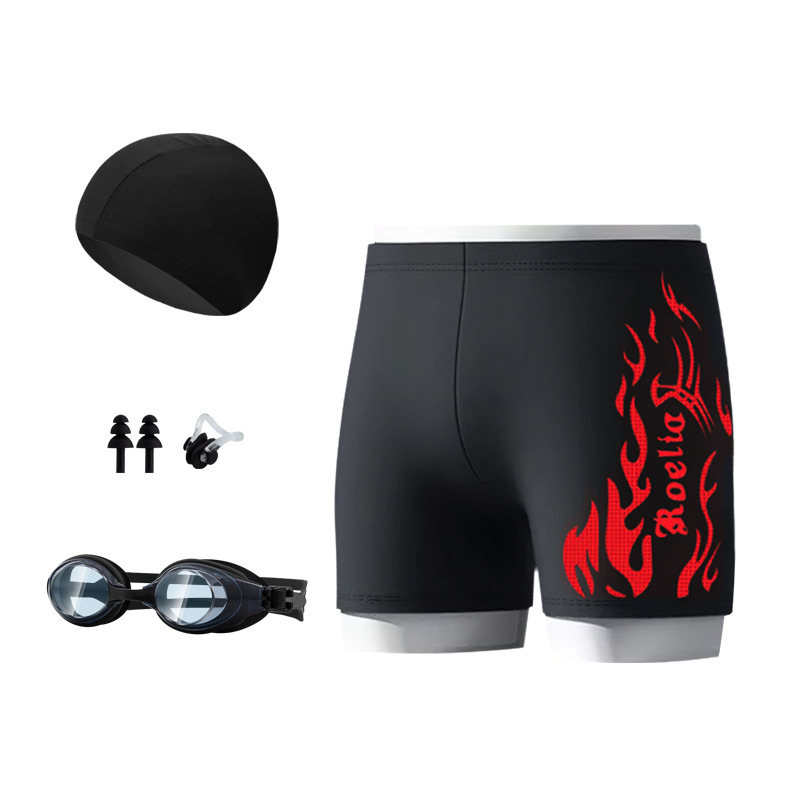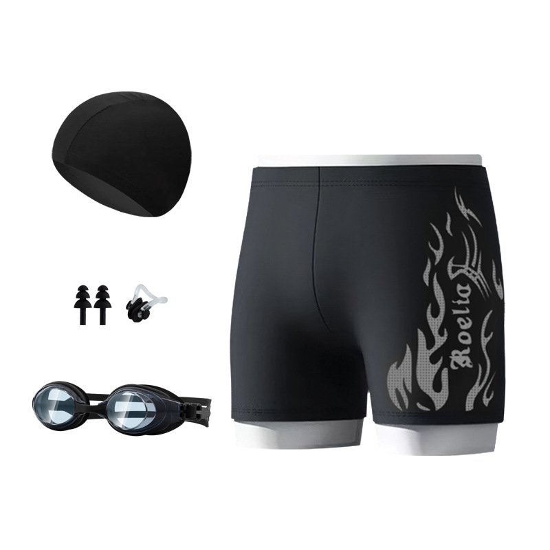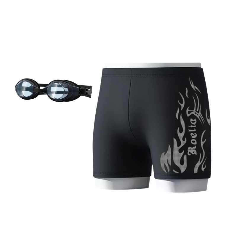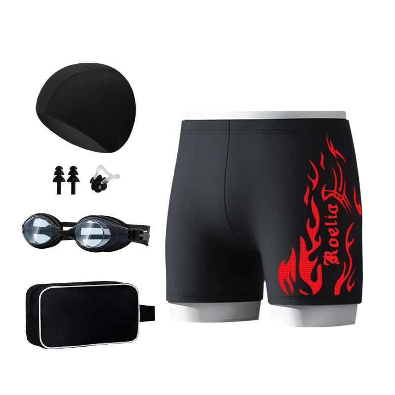 공장 직접 판매 나일론 불꽃 수영 트렁크 남자 학생 수영 고글 복서 빠른 건조 훈련 수영을위한 성인 전문 정장
