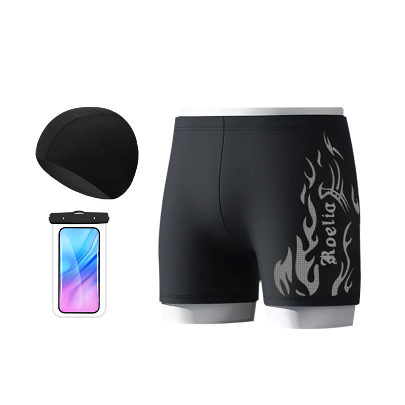 공장 직접 판매 나일론 불꽃 수영 트렁크 남자 학생 수영 고글 복서 빠른 건조 훈련 수영을위한 성인 전문 정장스토어 가기