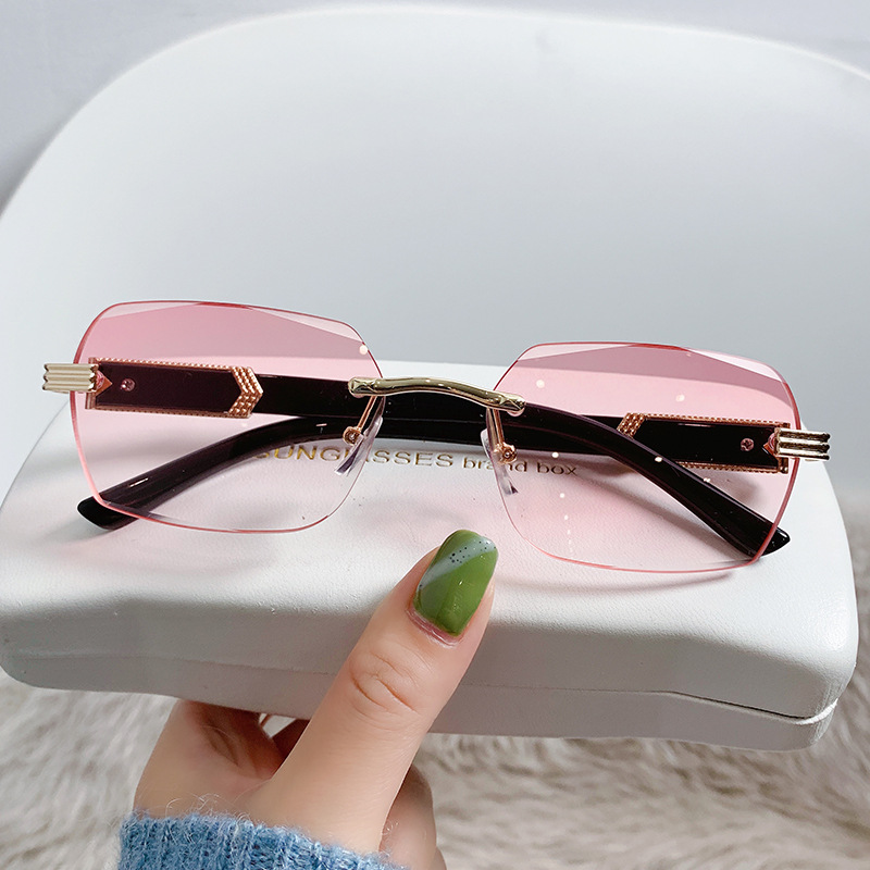 인터넷 유명인과 같은 스타일의 무테 선글라스 여성 패션 트렌드 그라데이션 컬러 오션 렌즈 선글라스