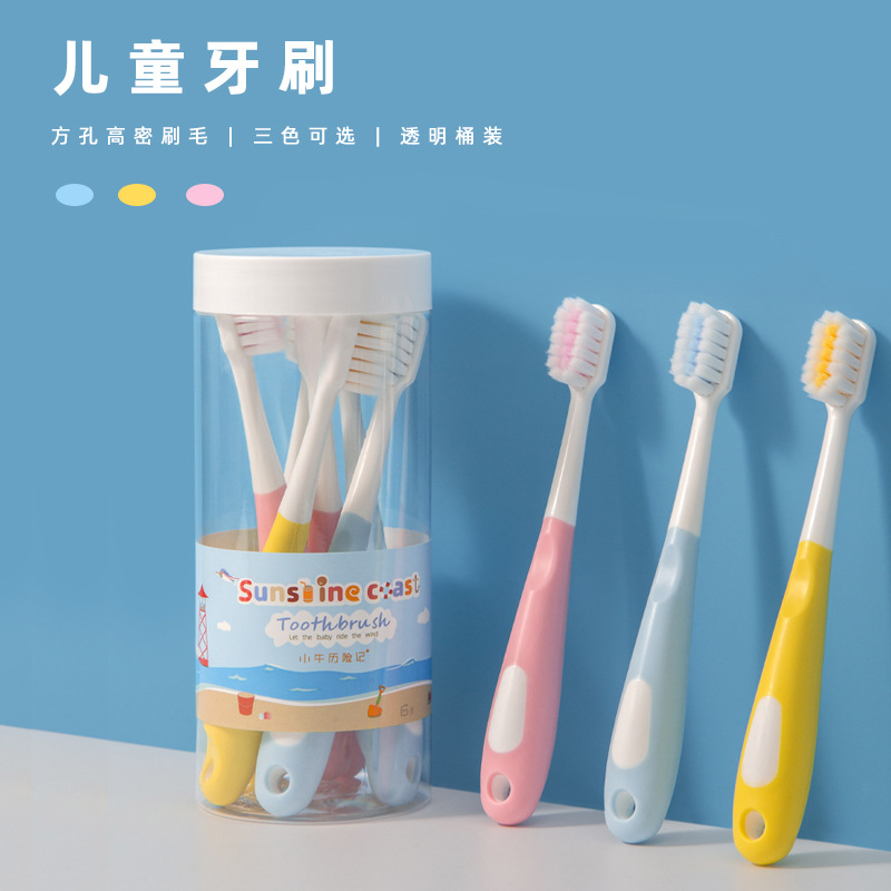 양주 송아지 모험 어린이 칫솔 도매 사각형 구멍 고밀도 머리 부드러운 머리 칫솔 3-12 세 배럴 6 PC스토어 가기