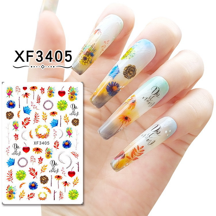 접착 네일 스티커가있는 XF 크로스 보더 가을 메이플 리프 시리즈 네일 아트 핸드 헬드 경량 단일 독립 종이 카드 팩