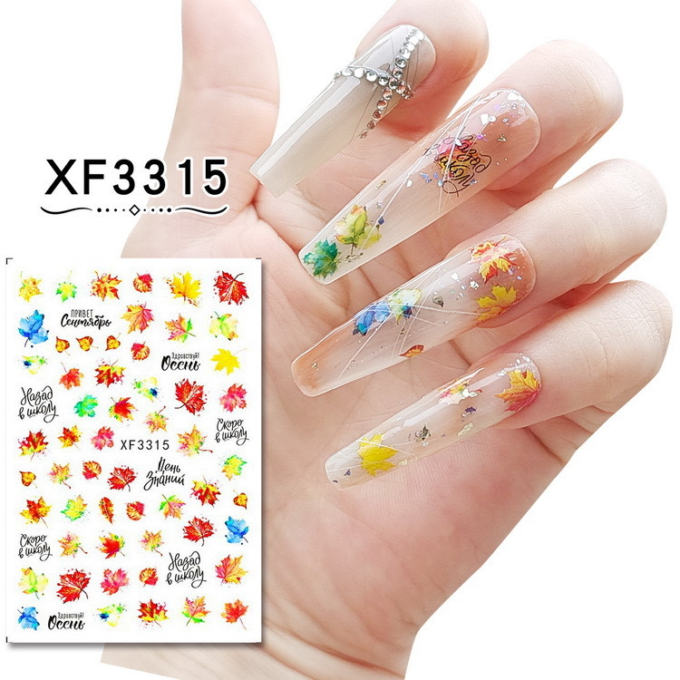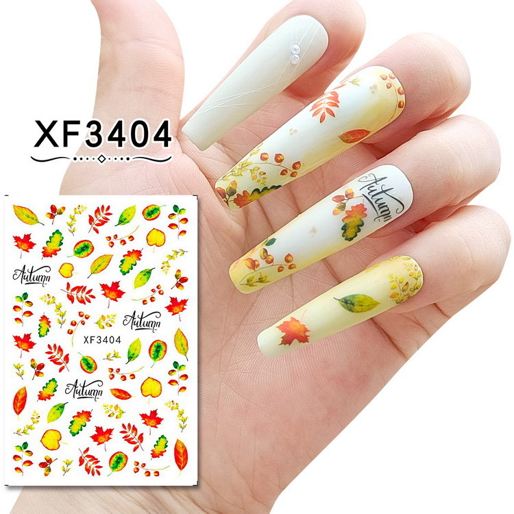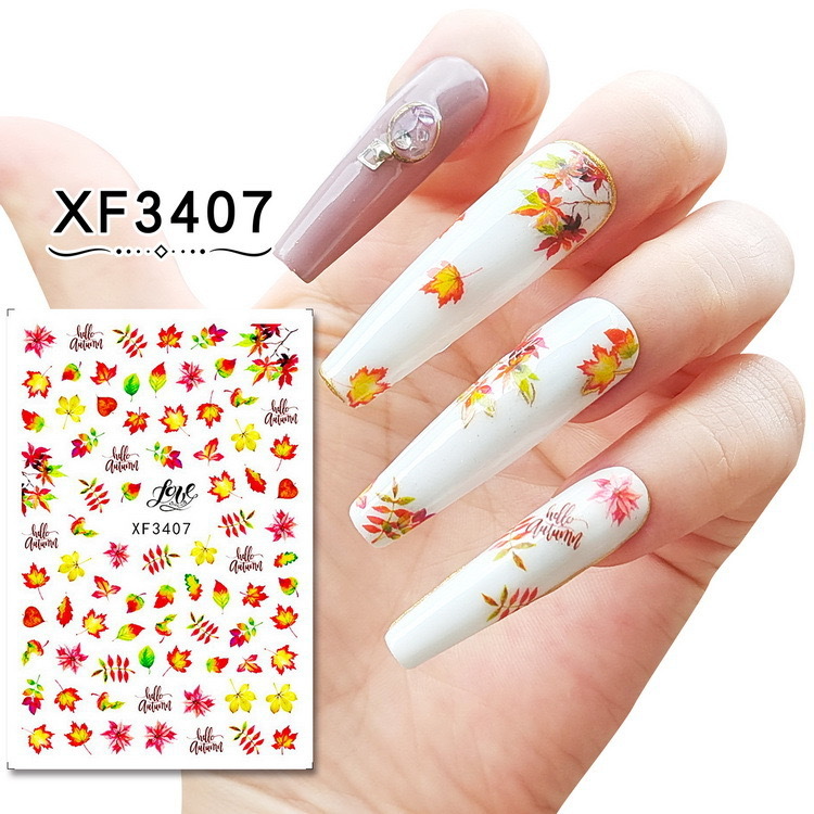 접착 네일 스티커가있는 XF 크로스 보더 가을 메이플 리프 시리즈 네일 아트 핸드 헬드 경량 단일 독립 종이 카드 팩스토어 가기