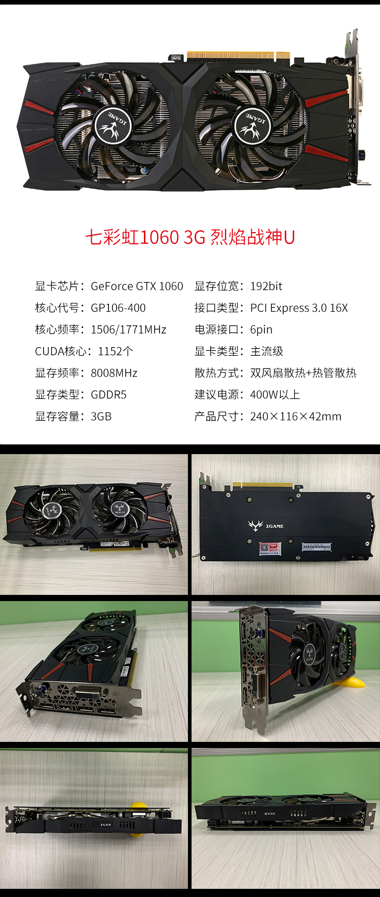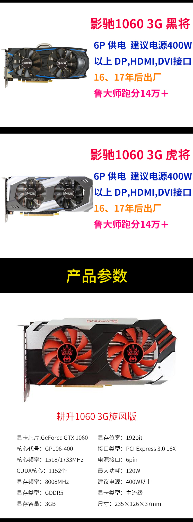 해체 1060 3g 비디오 게임 4k 컴퓨터 이산 그래픽 GTX10603G 데스크탑 1063