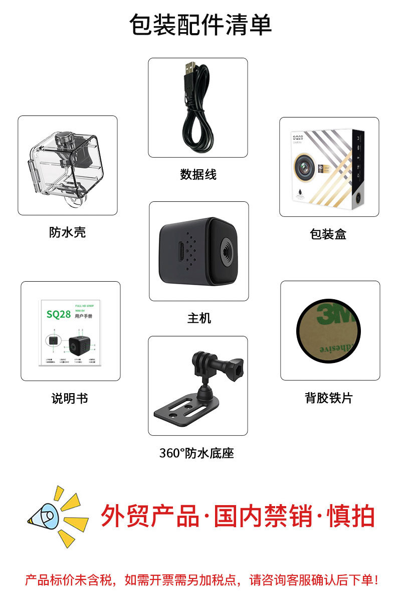 SQ28 방수 카메라 초고화질 1080p 적외선 야간 투시 야외 DV 항공 촬영 기록 카메라 크로스보더 모델스토어 가기