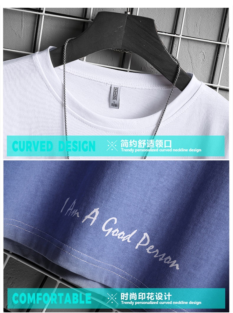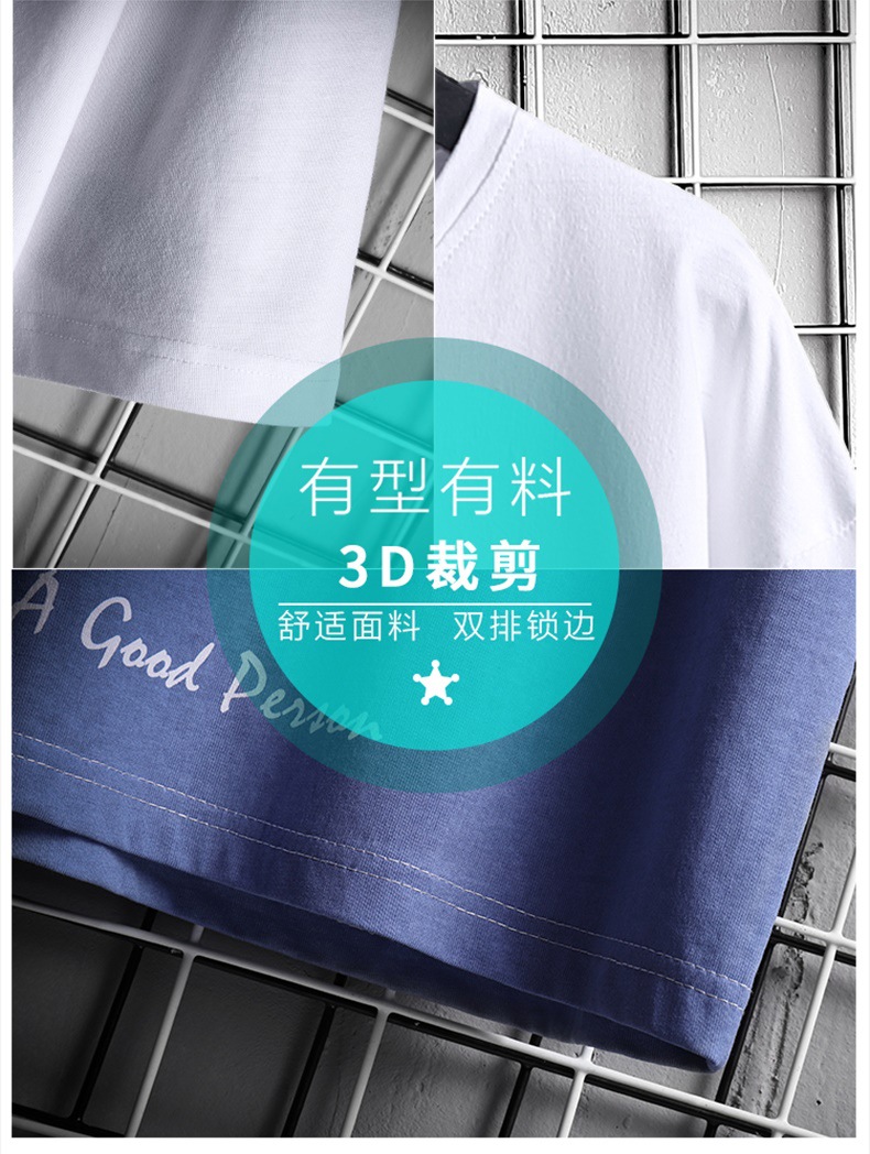 여름 새로운 점진적 컬러 반팔 티셔츠 남성용 한국식 유행 학생 올매치 루즈한 핸섬 라운드 넥 반팔 탑스토어 가기