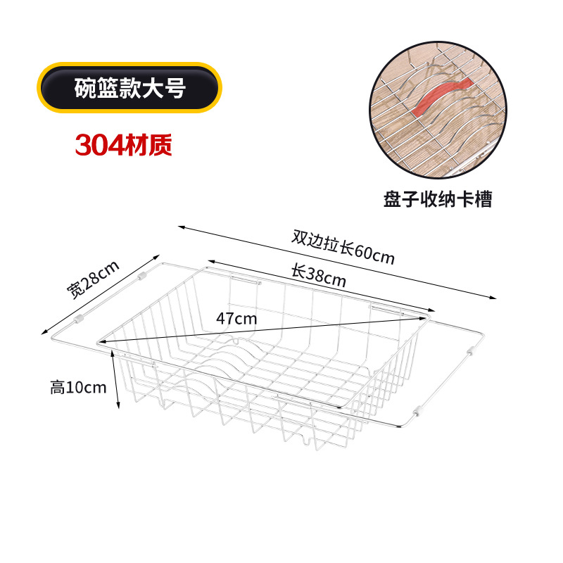 304 스테인레스 스틸 싱크 확장 배수 랙 가정용 과일 및 야채 요리 여과 바구니 보관 랙 주방 용품스토어 가기