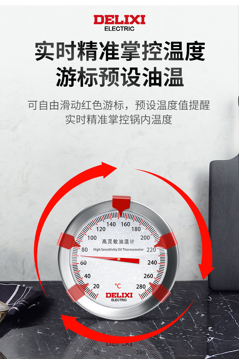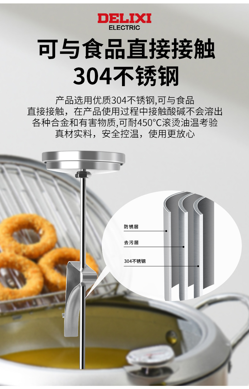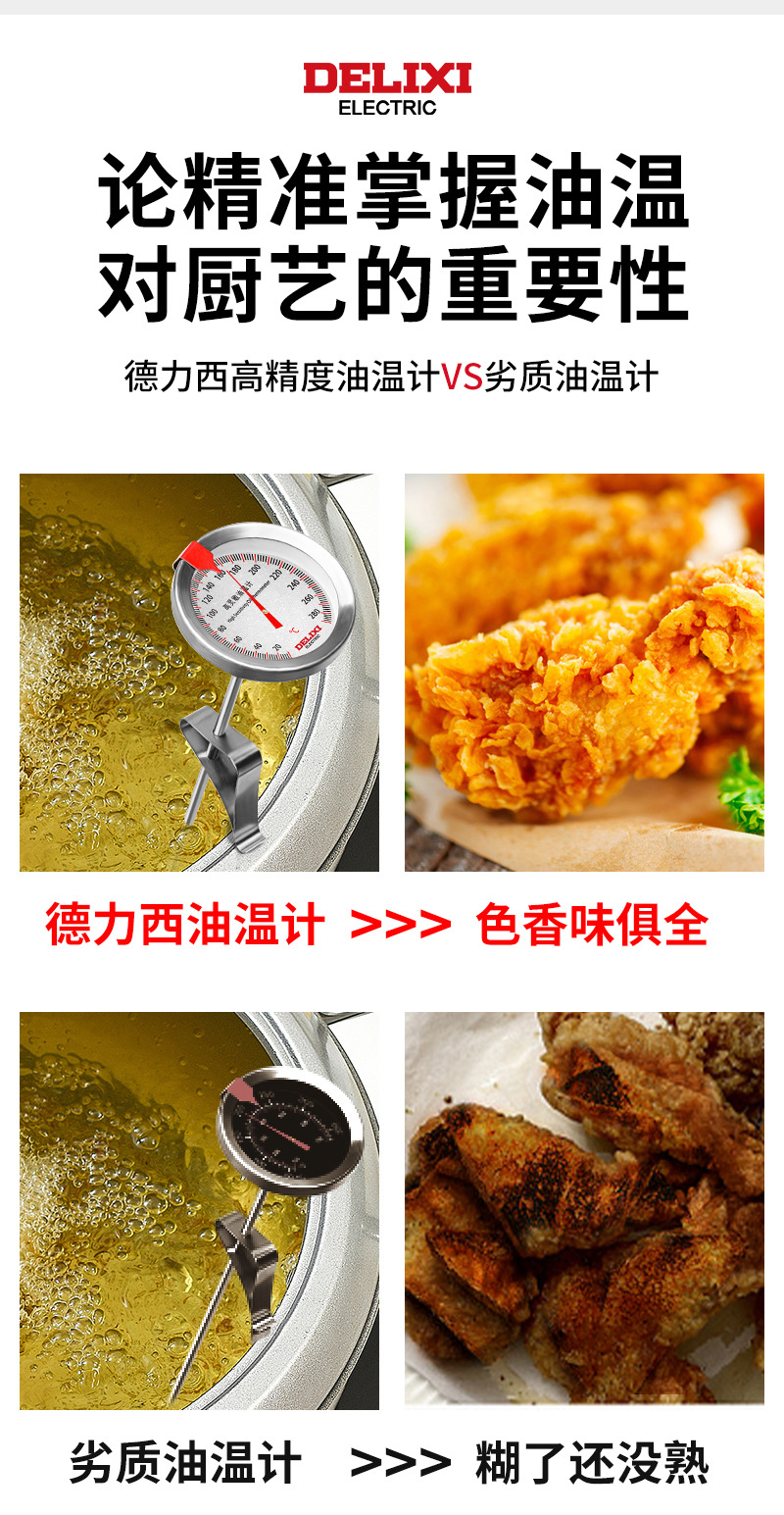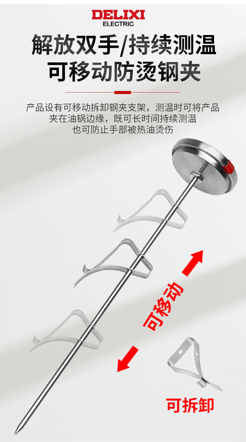 Delixi 오일 온도계 튀김 온도계 프로브 유형 주방 식품 베이킹 바베큐 온도계 고정밀