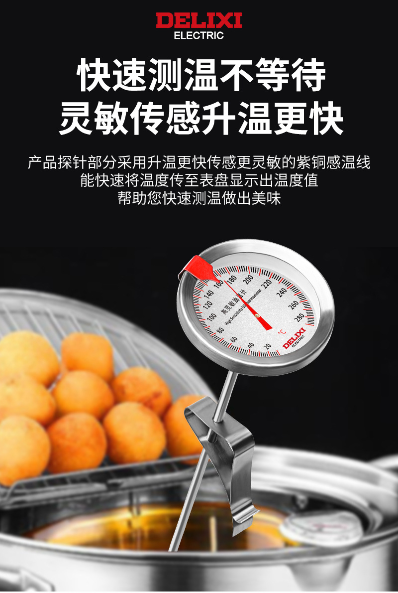 Delixi 오일 온도계 튀김 온도계 프로브 유형 주방 식품 베이킹 바베큐 온도계 고정밀스토어 가기