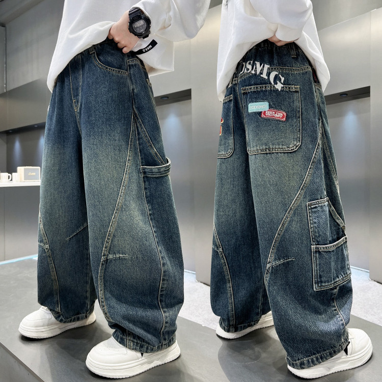 아동복 남아 루즈핏 청바지 중대형 아동 남아 작업복 바지 외출복 아동 봄 가을 바지 해외 도매