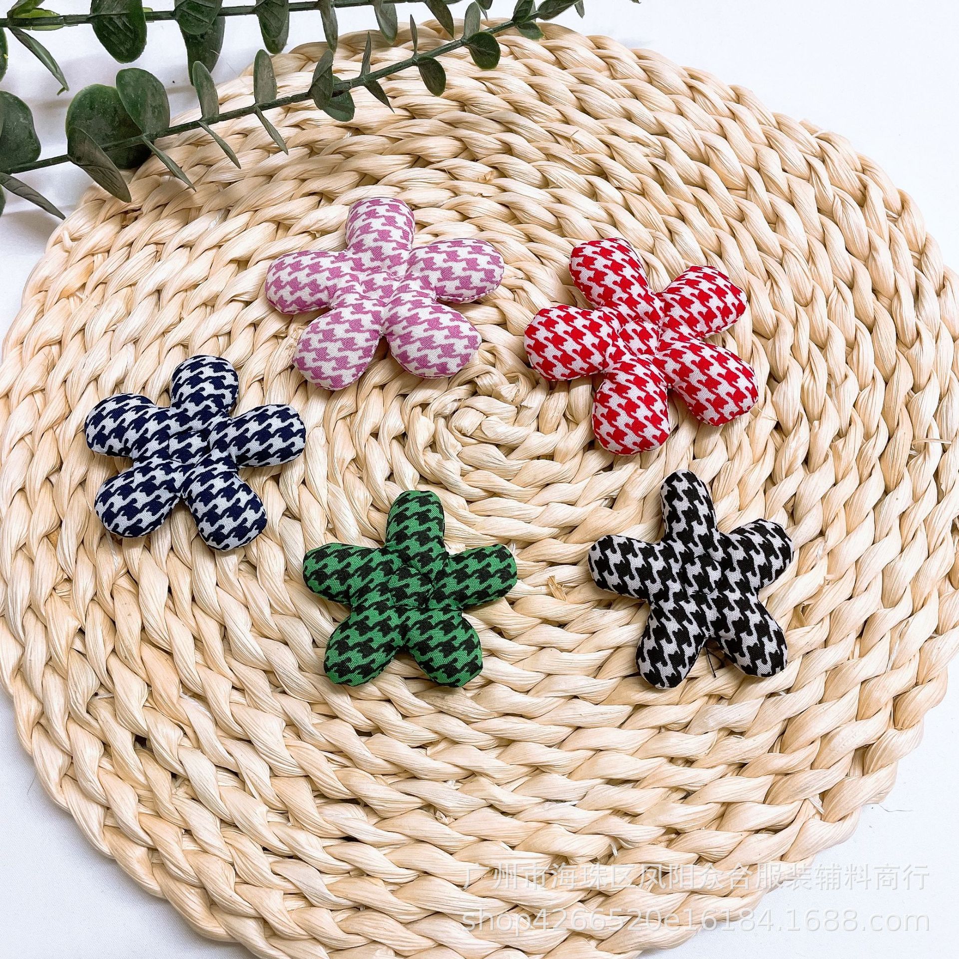 사이버 인기 Houndstooth 3 차원 면 5 잎 꽃 인형 유행 의류 유행 양말 코사지 신발 꽃 의류 패치 꽃스토어 가기