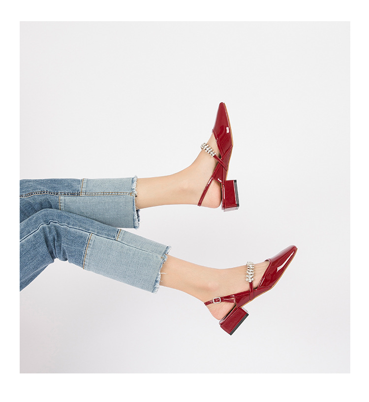 개인 링크 여성 플랫 샌들 2022 여름 새로운 특허 가죽 모조 다이아몬드 샌들 부드러운 가죽 가방 헤드 백 빈 버클 신발스토어 가기