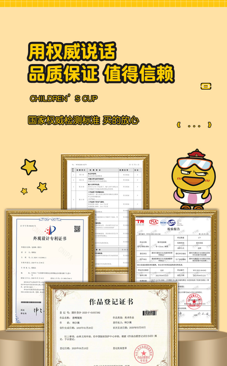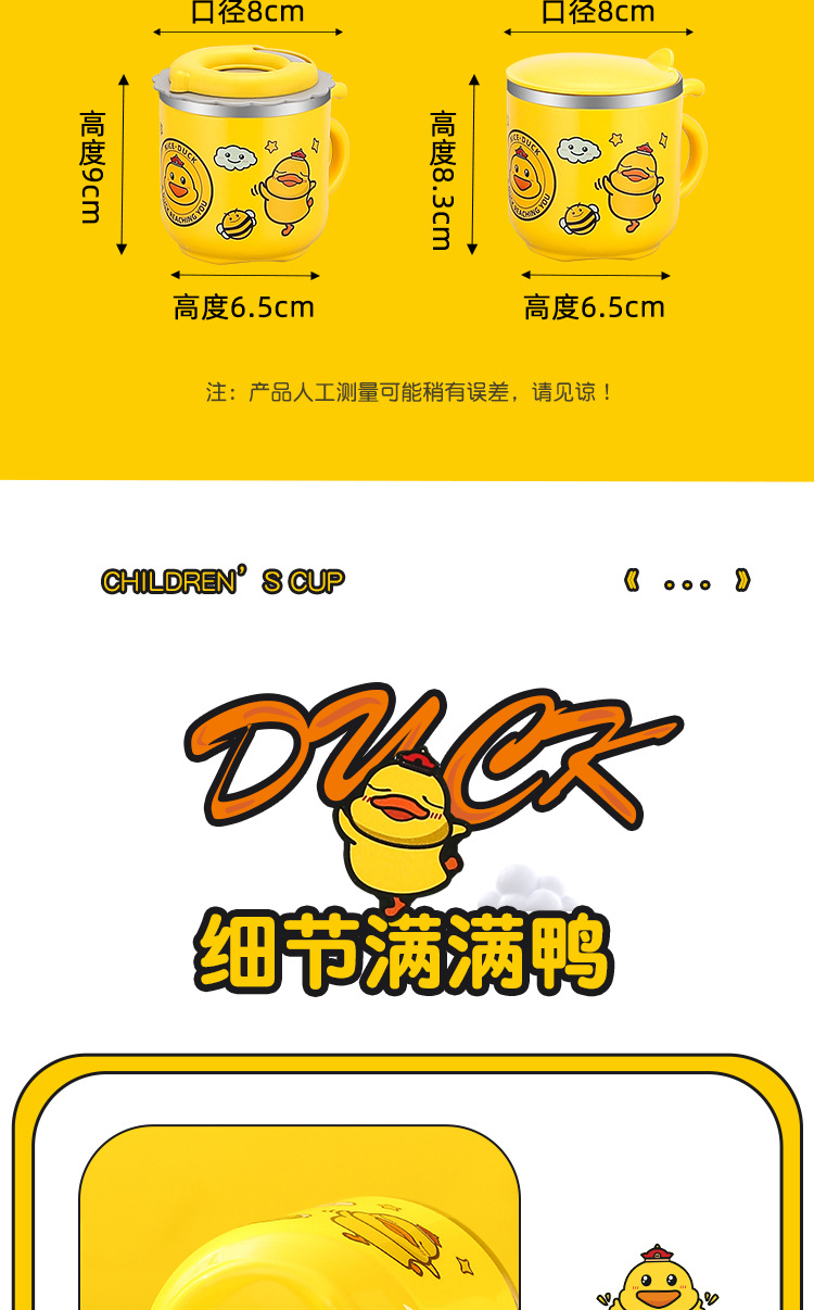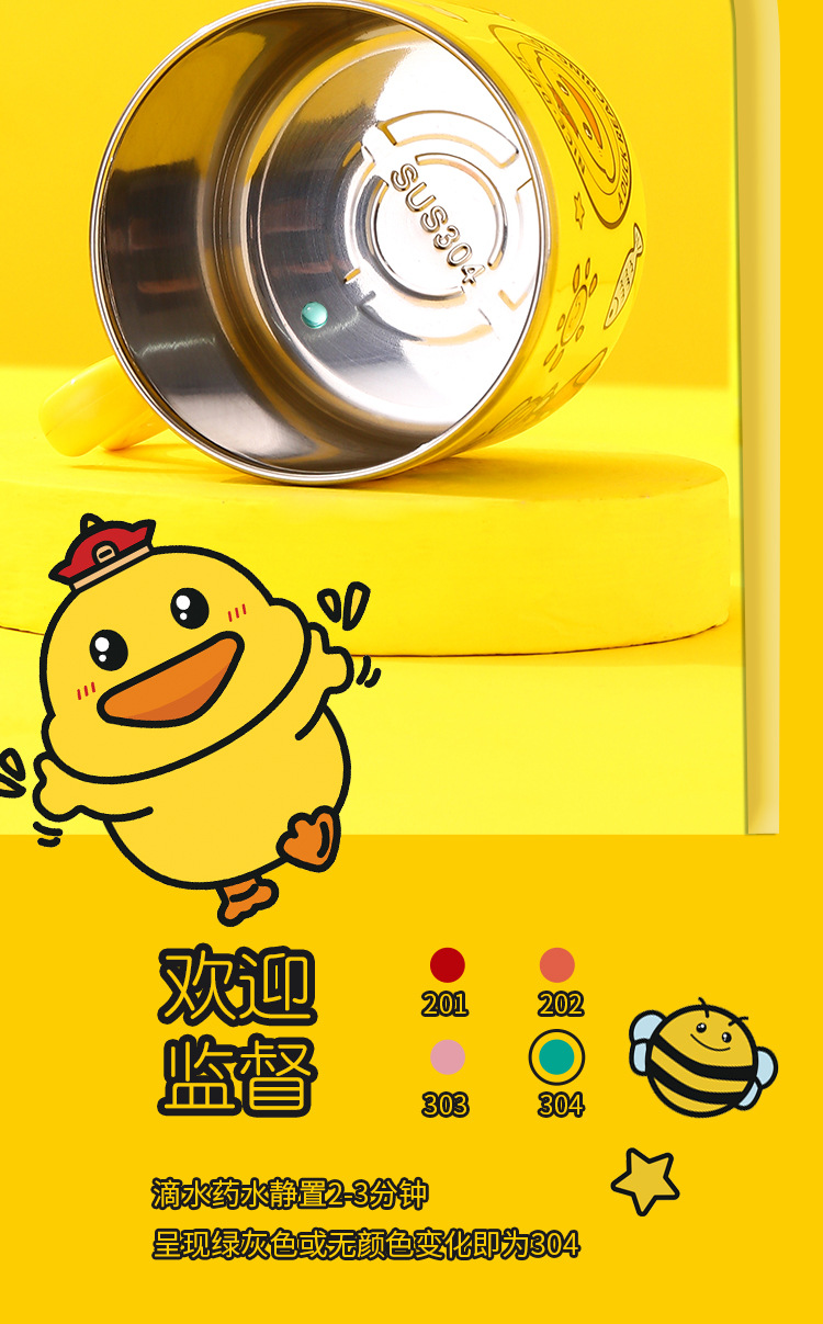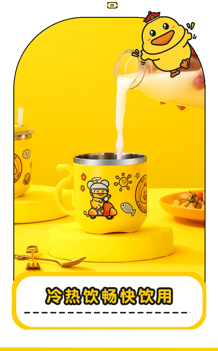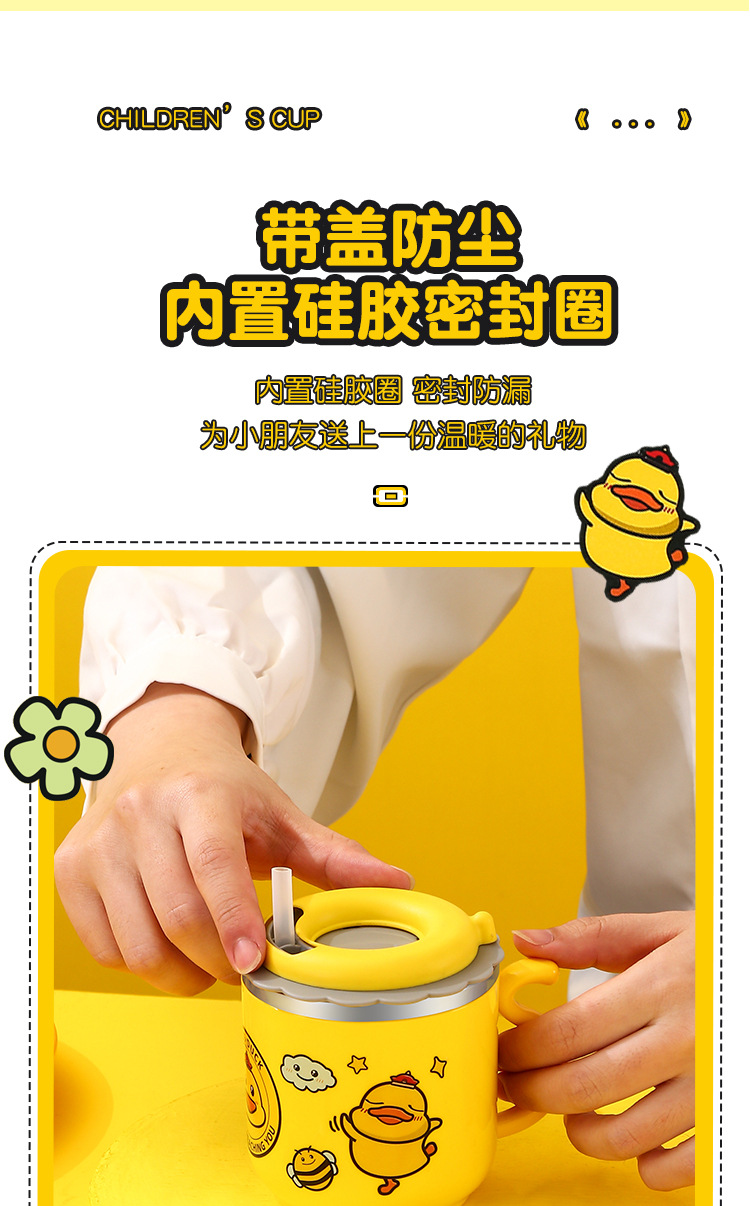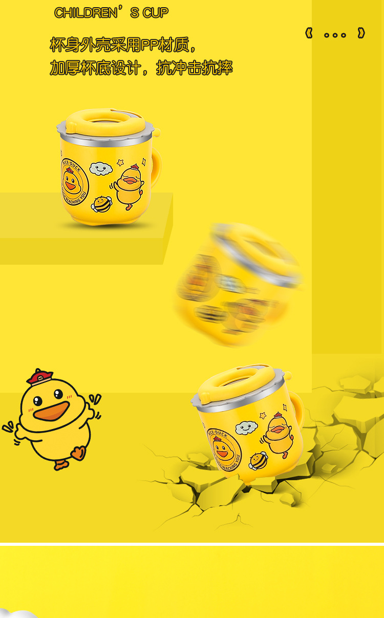 다양한 사랑스러운-304 스테인레스 스틸 옐로우 오리 컵 (짚 더블 유치원 어린이 컵 선물)스토어 가기