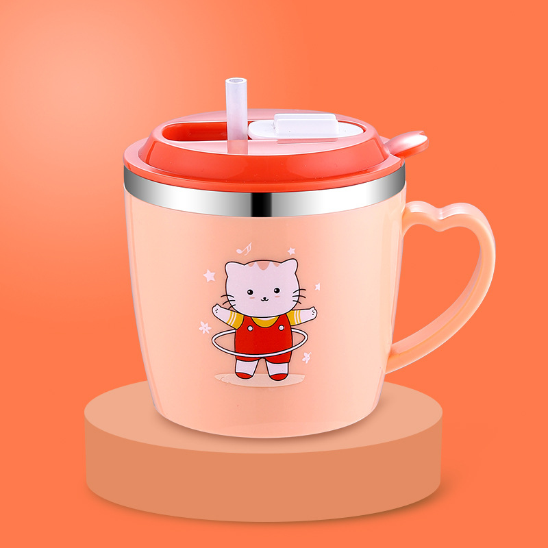 다양한 사랑스러운-304 스테인레스 스틸 옐로우 오리 컵 (짚 더블 유치원 어린이 컵 선물)