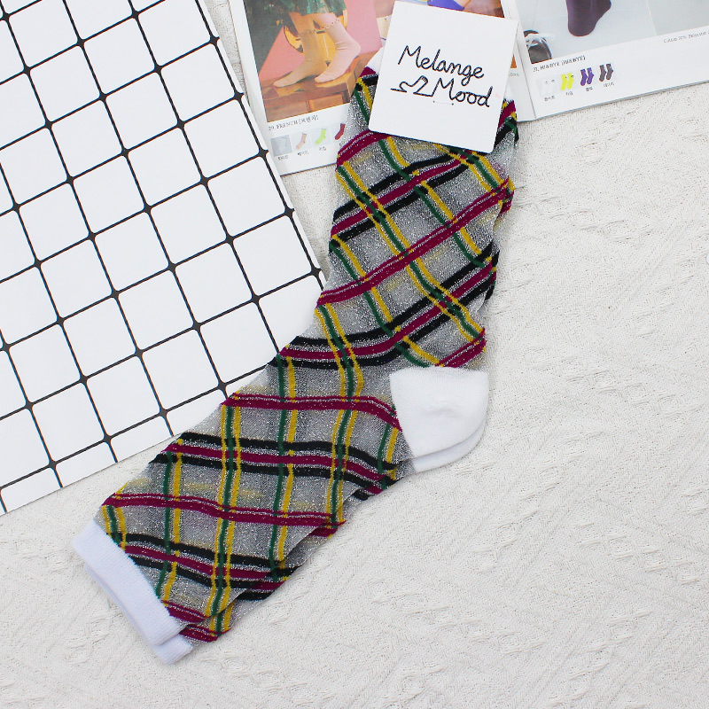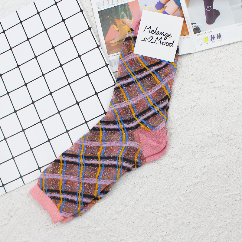 한국 동대문 봄과 여름 새로운 여성 스태킹 양말 마름모꼴 브라이트 라인 한국식 여성 스타킹