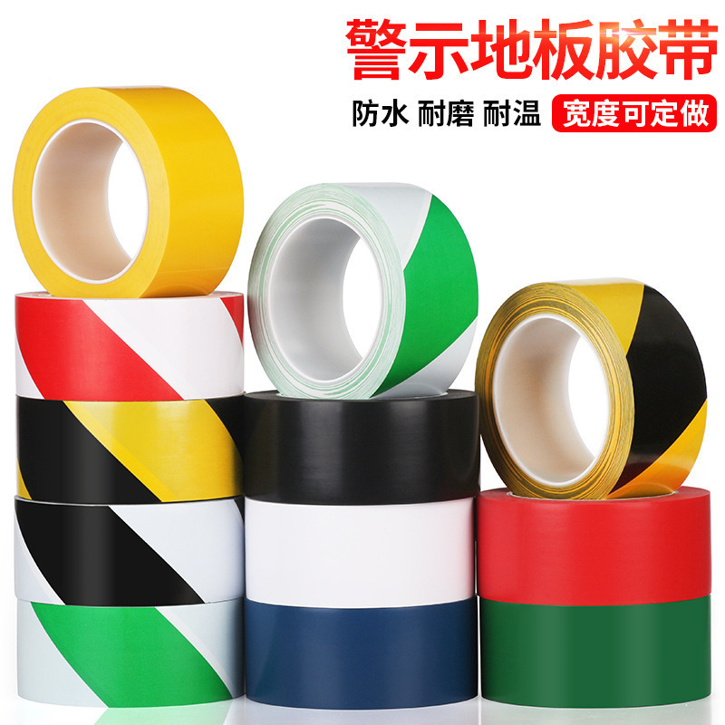 경고 테이프 PVC 방수 내마모성 먼지 없는 작업장 테이프 옐로우와 블랙 안전 로고 플로어 테이프 도매스토어 가기