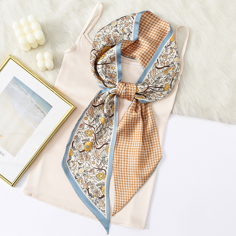레트로 인쇄 고급 모조 실크 리본 바람 디자인 얇은 좁은 긴 작은 실크 스카프 조수의 머리카락