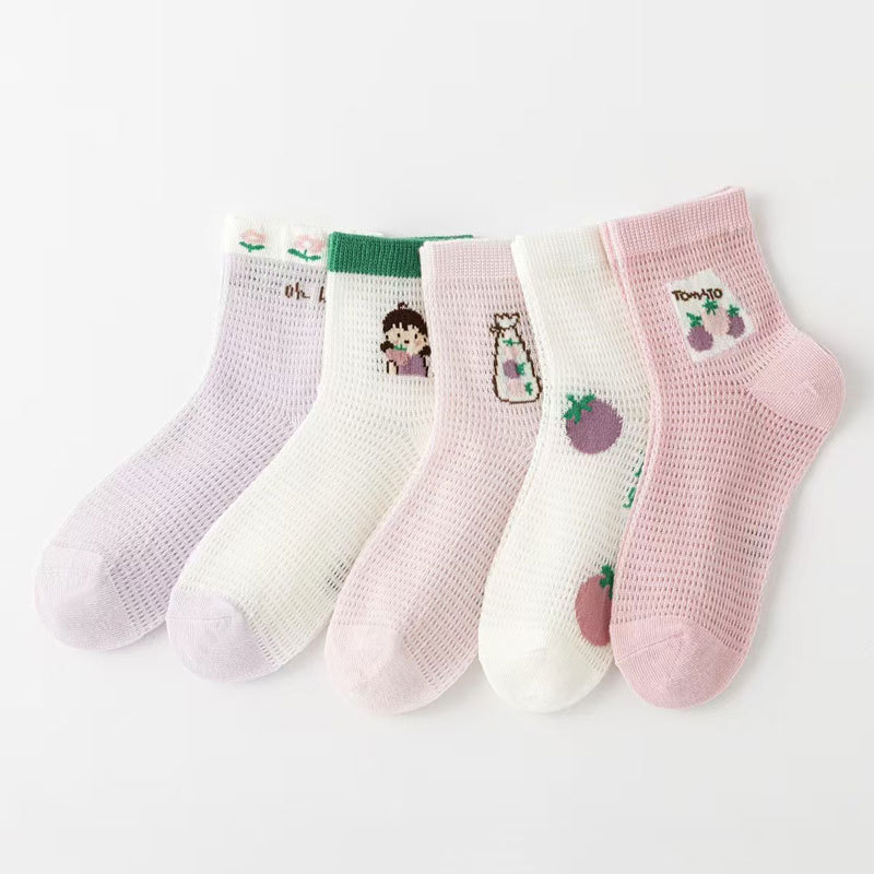 6 손가락 마우스 봄과 여름 메쉬 얇은 어린이 양말 도매 제조 업체 만화 빗질면 어린이 양말 소년과 소녀 면화 양말
