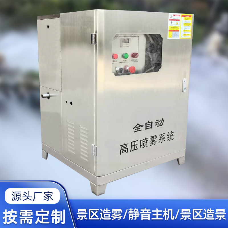 高压冷雾主机的构成:我公司人造雾系统由高压主机、雾化喷头(不同场所使用的不一样)、电控部分、网络控制部分和管路组成。