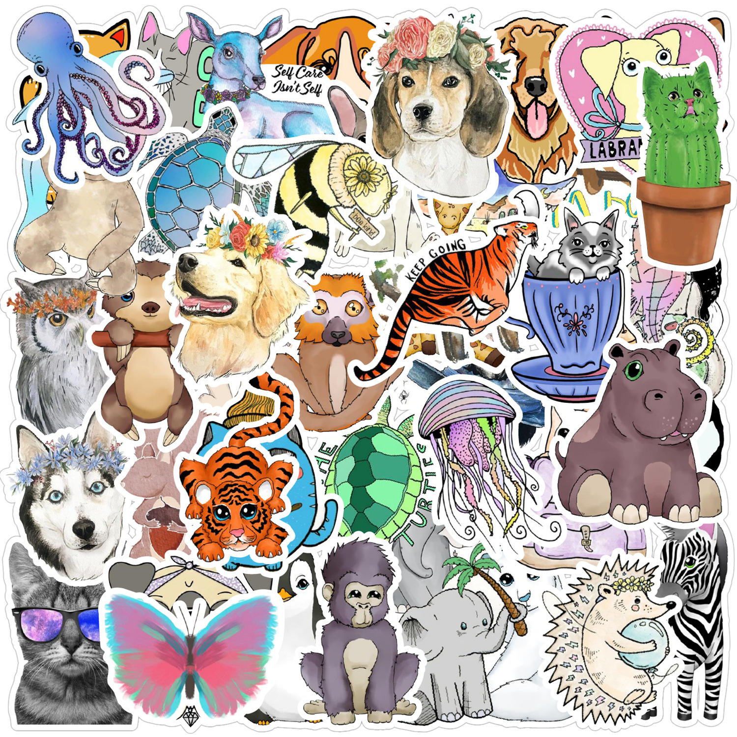 다양한 50 가지 비 침해 동물 국경 낙서 스티커 자동차 휴대 전화 물 컵 컴퓨터 손 계정 방수 스티커스토어 가기