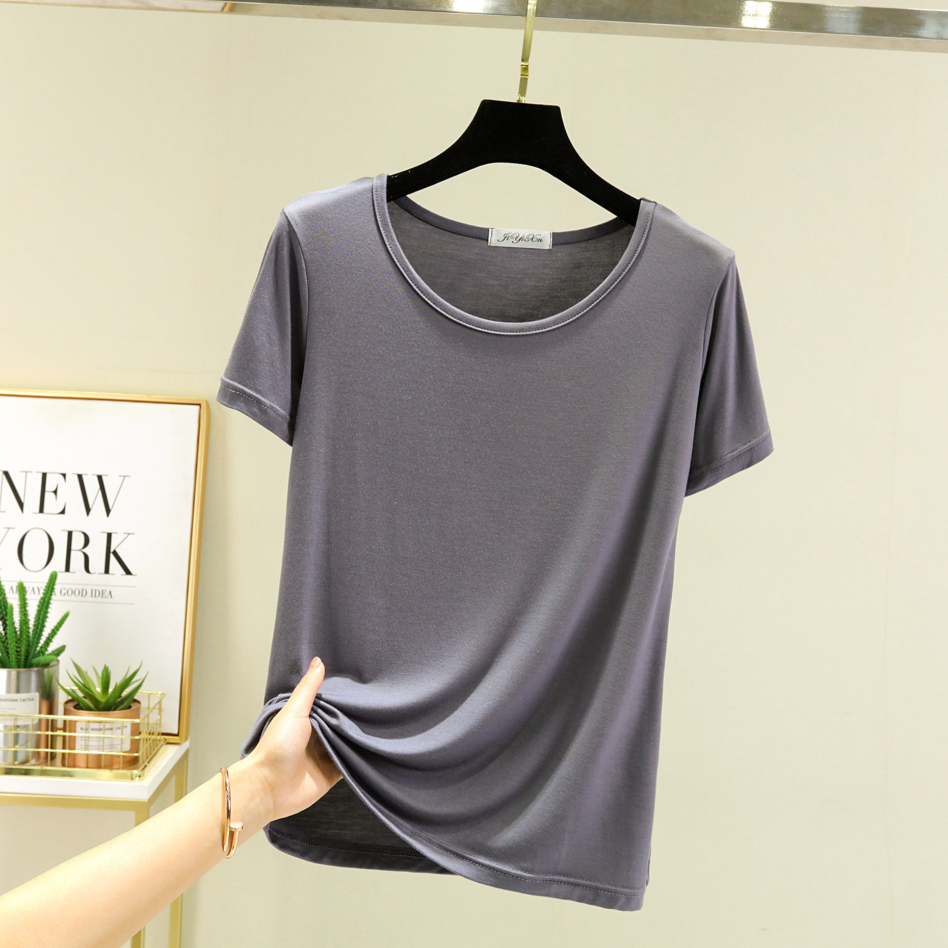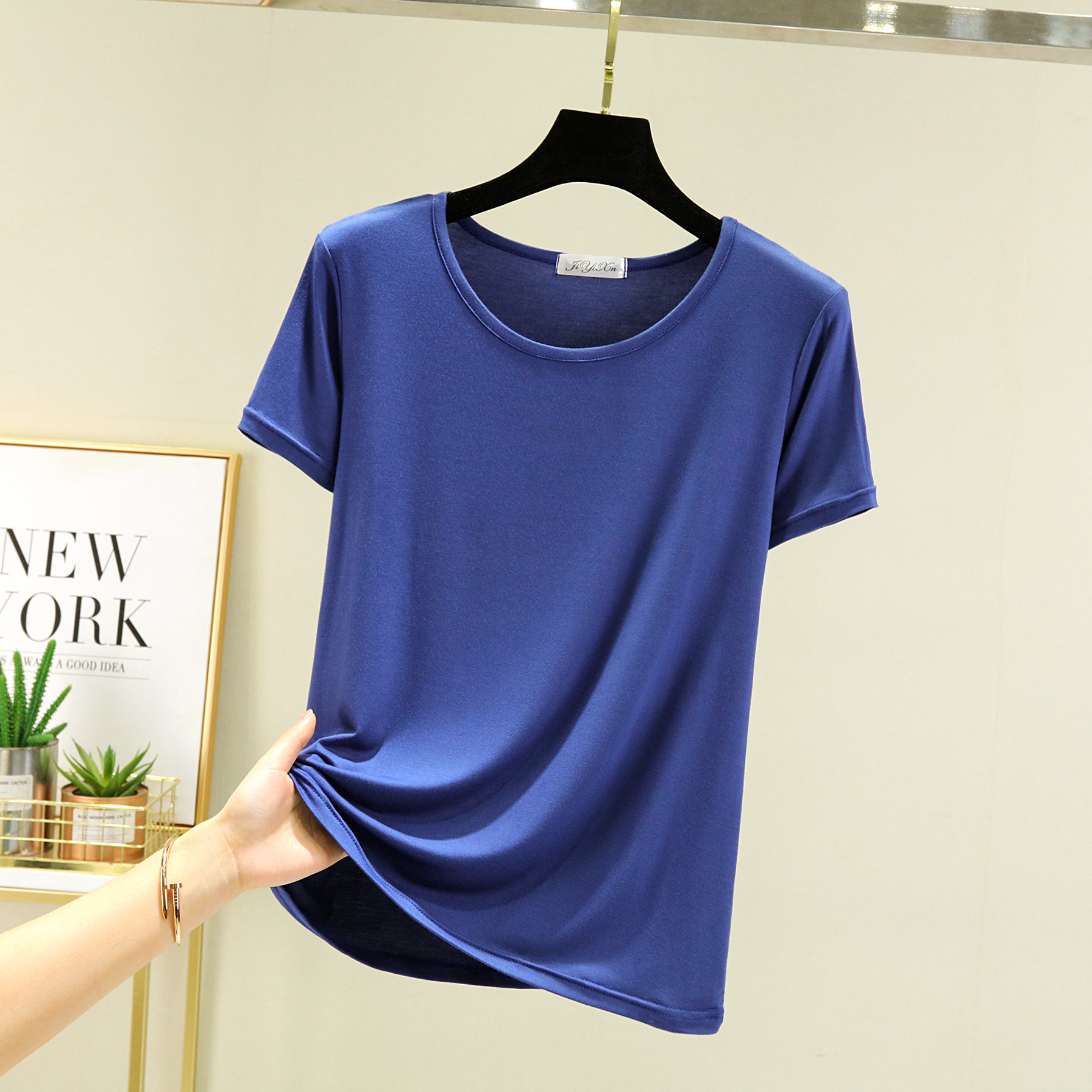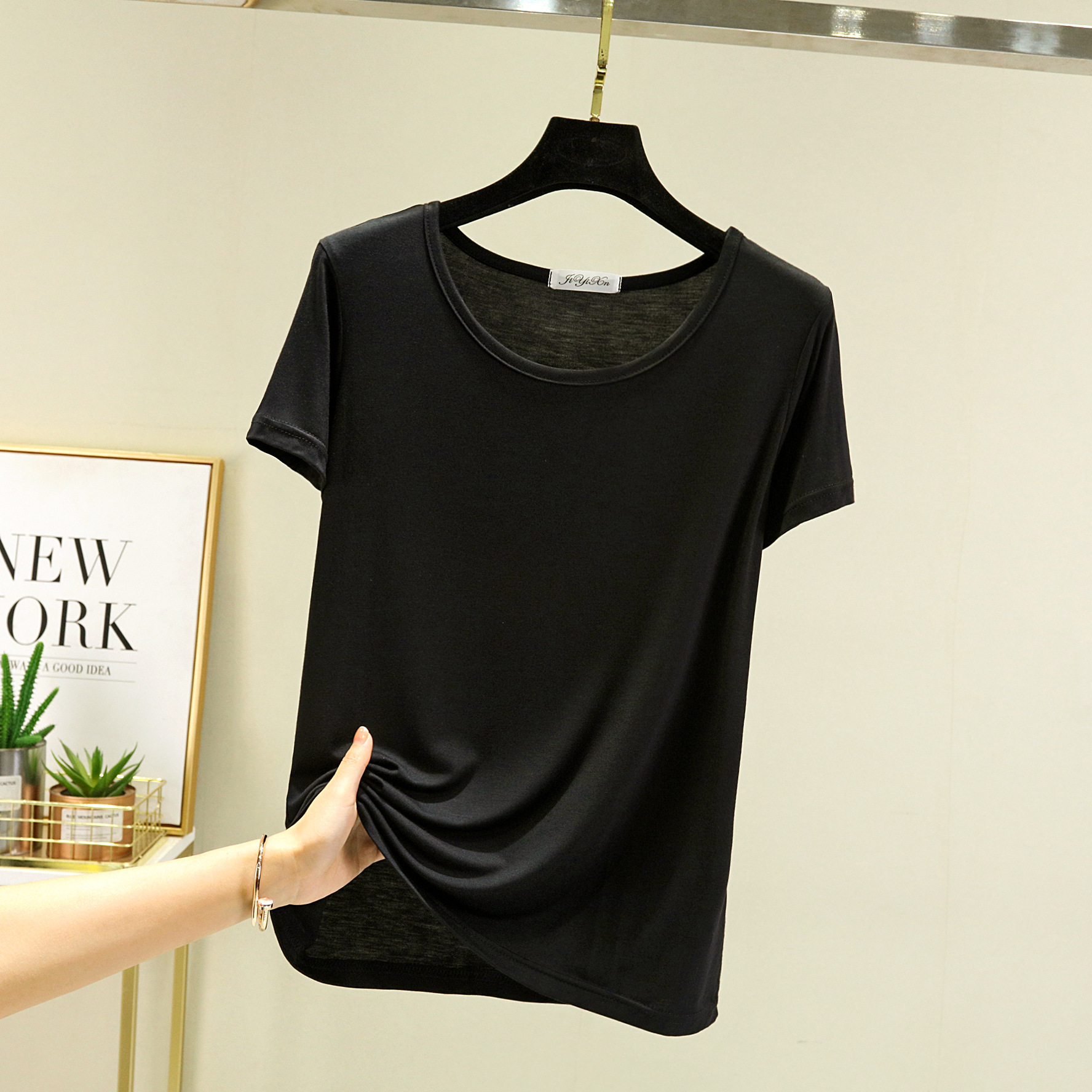 모달 크루넥 티셔츠 여성용 여름 얇은 반팔 루즈한 플러스 사이즈 슬리밍 베이스 셔츠 한국 캐주얼 올매치 탑