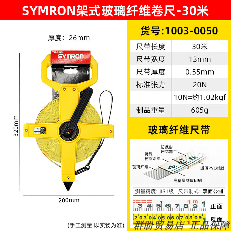 Taidao 1003-0050 테이프 측정 메트릭 등급 I 정밀 테이프 측정 유리 섬유 긴 테이프 측정 측량 및 매핑 미터 눈금자 R-30U스토어 가기