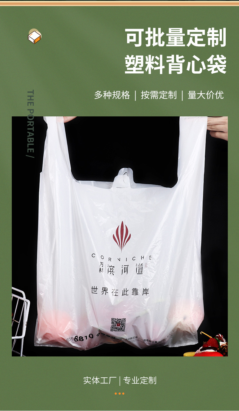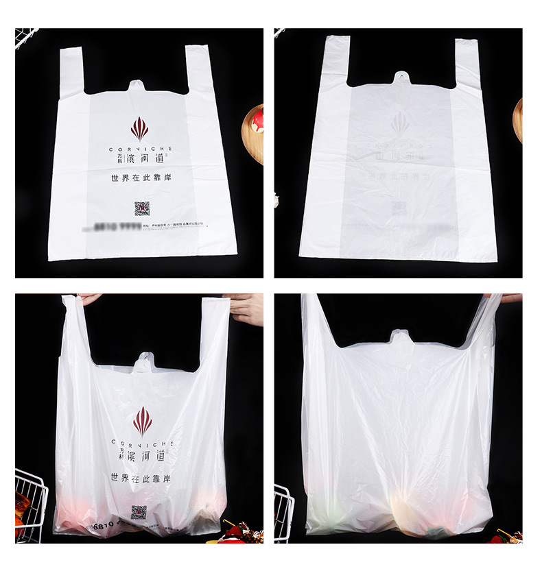 비닐 조끼 가방 슈퍼마켓 쇼핑 휴대용 편리한 가방 테이크 아웃 포장 봉투 비닐 식품 가방 도매 인쇄 가능 로고