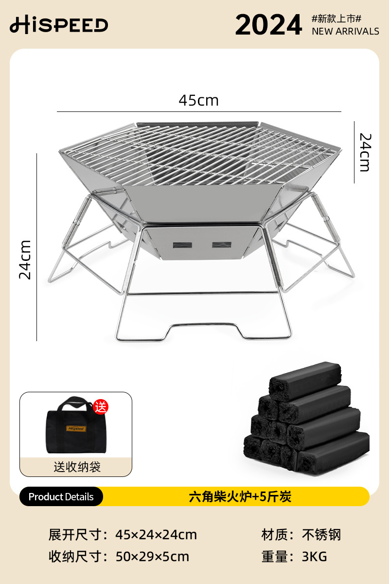 • 육각형 + 5kg 대나무 숯 [바비큐, 모닥불 겸용]