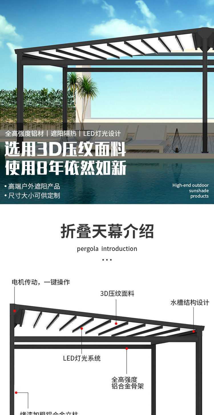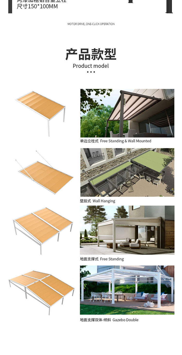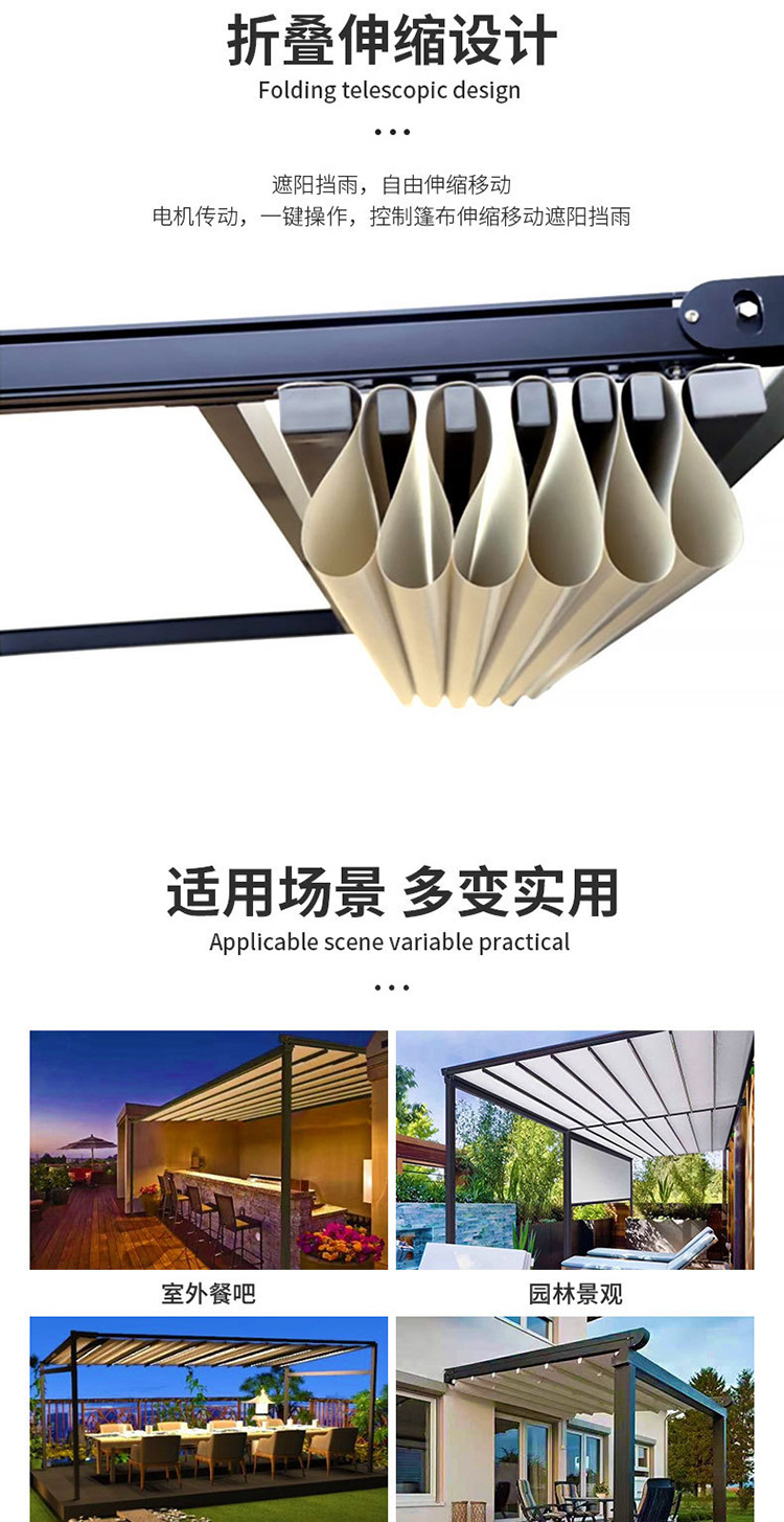 국경 간 야외 전동 접이식 차양막, 텔레스코픽 차양막, 발코니 지붕 단열 차양, 알루미늄 합금 차양, 대외 무역용