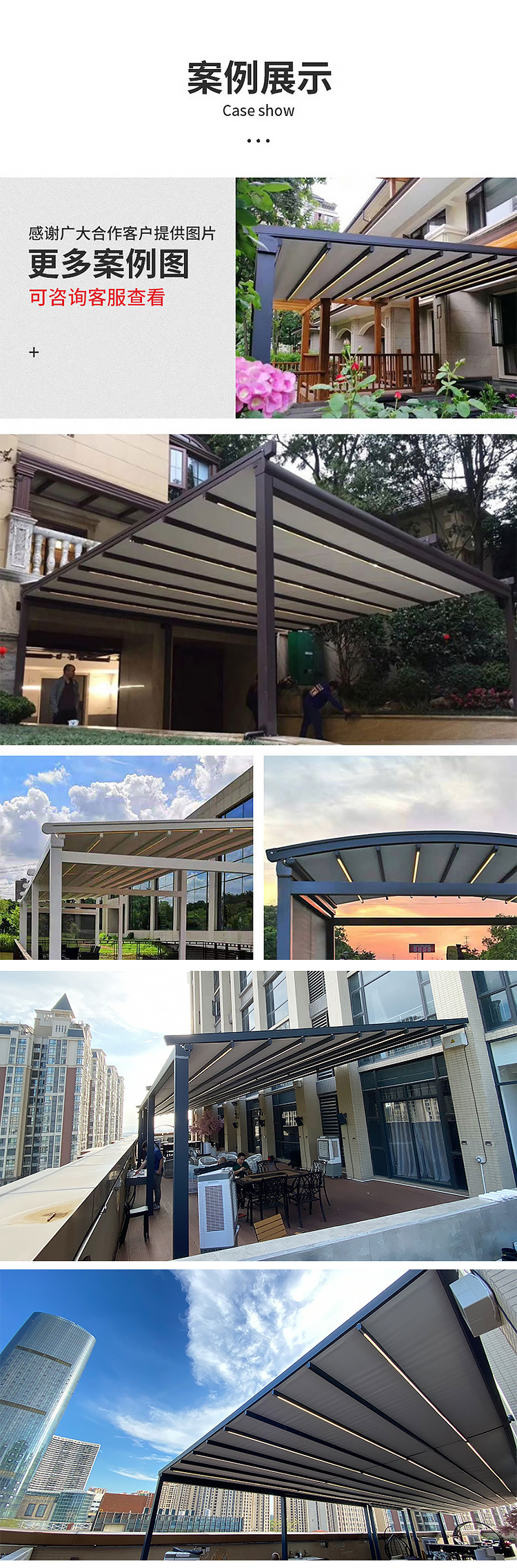 국경 간 야외 전동 접이식 차양막, 텔레스코픽 차양막, 발코니 지붕 단열 차양, 알루미늄 합금 차양, 대외 무역용스토어 가기