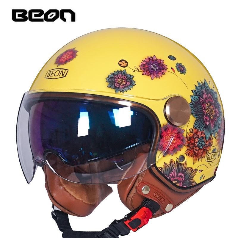 BEON 헬멧 오토바이 헬멧 레트로 하프 헬멧 사계절 유니버설 남성과 여성의 전기 오토바이 더블 렌즈 헬멧