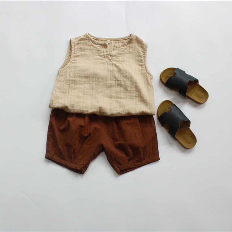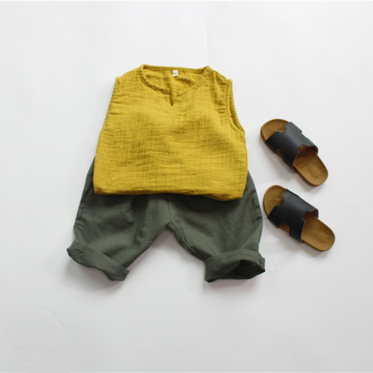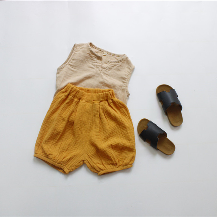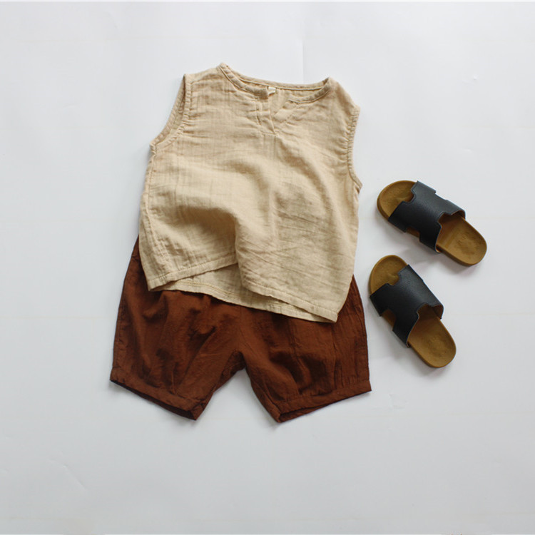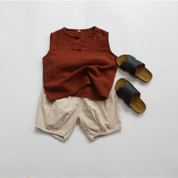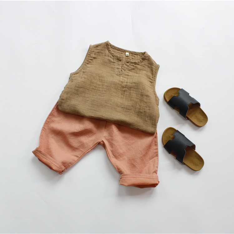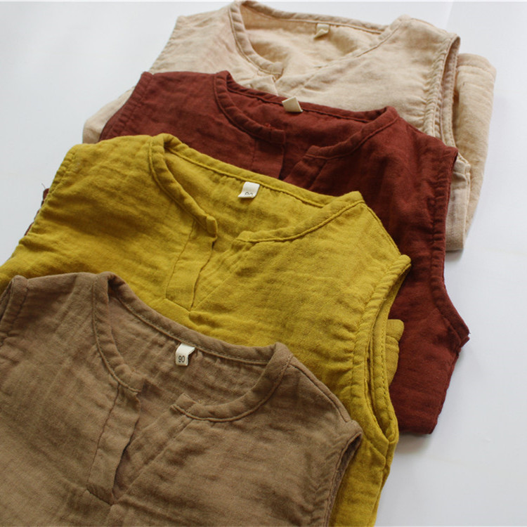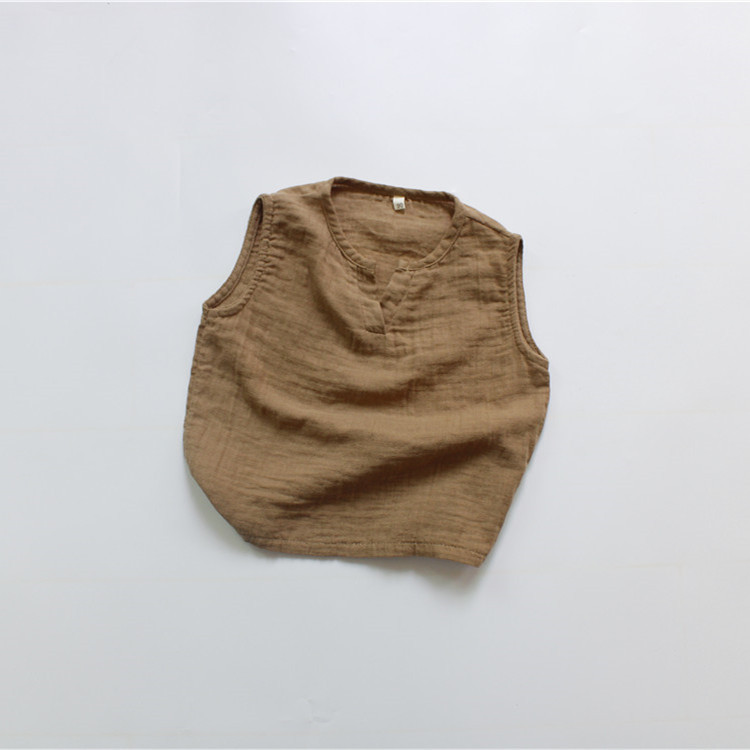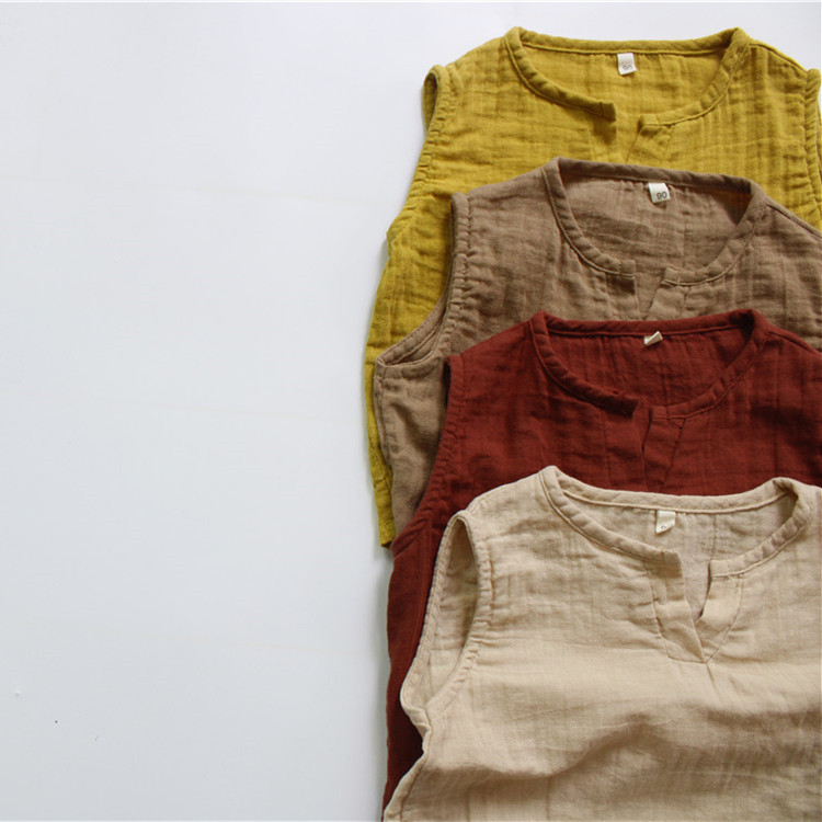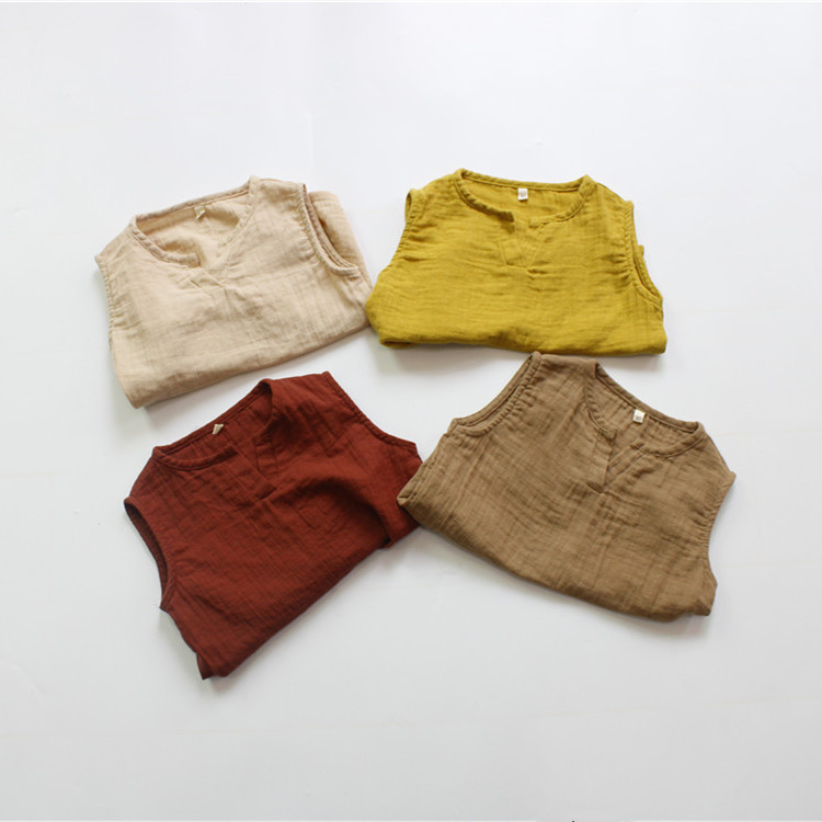 여름 어린이 조끼 소년 한국 스타일 신선한 면 거즈 느슨하고 편안한 단색 부드럽고 밀랍 같은 아기 소녀 조끼 다목적스토어 가기