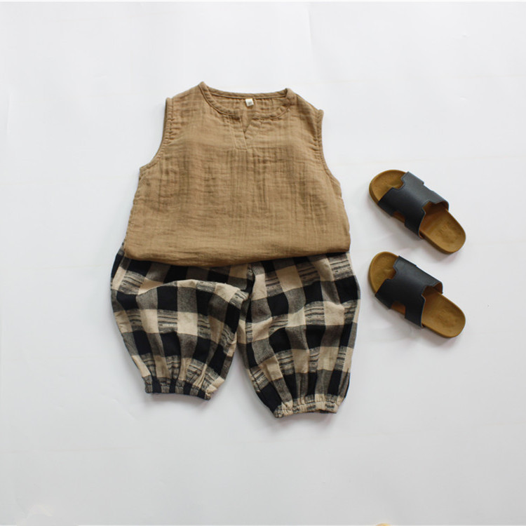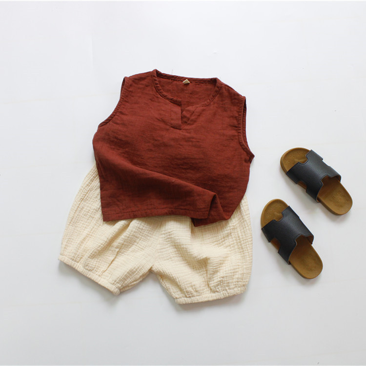 여름 어린이 조끼 소년 한국 스타일 신선한 면 거즈 느슨하고 편안한 단색 부드럽고 밀랍 같은 아기 소녀 조끼 다목적