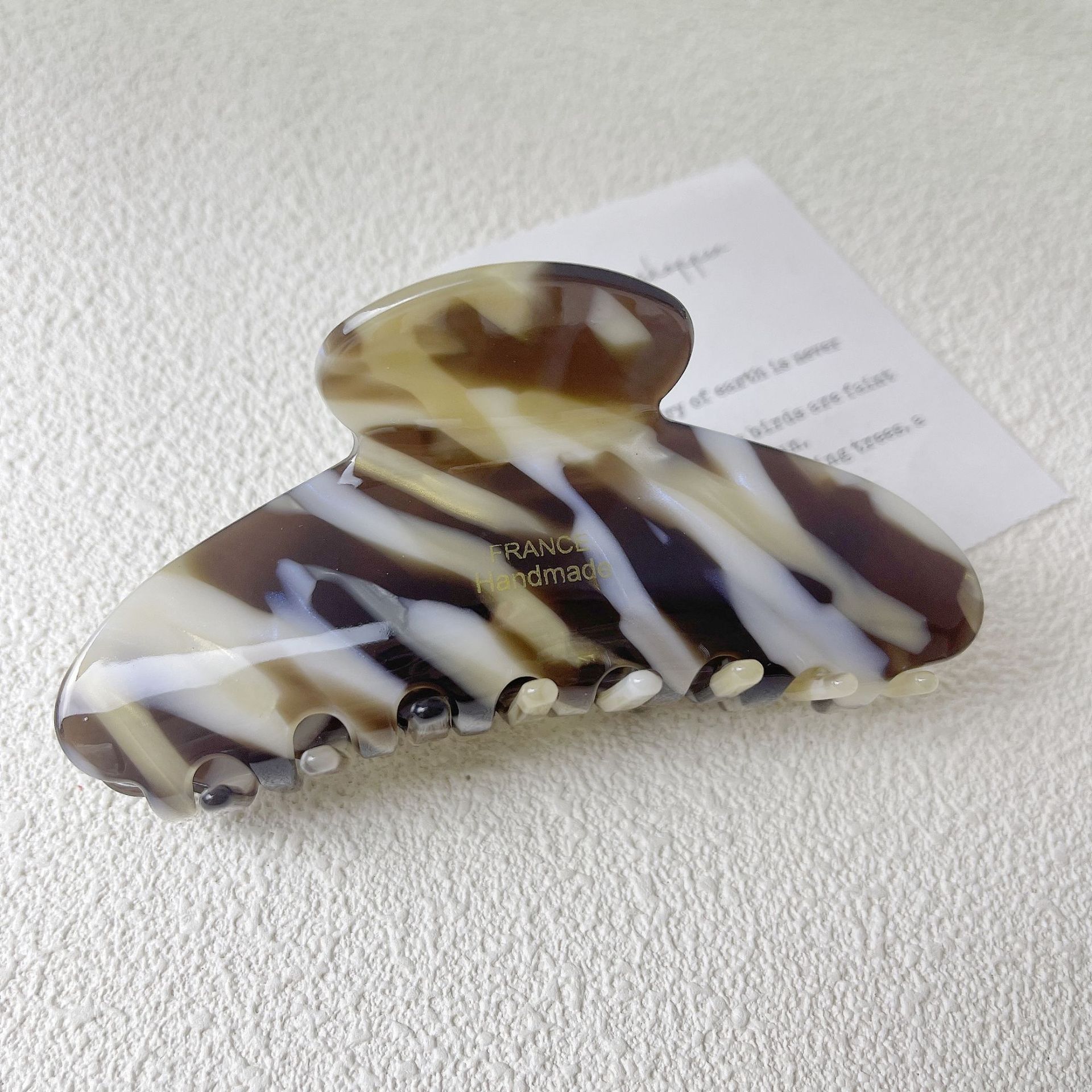 한국어 라이트 럭셔리 스타일 타원형 클립 고품질 아세테이트 헤어 클립 대형 상어 클립 헤어 클립 플레이트 표범 인쇄 여성 헤어 액세서리